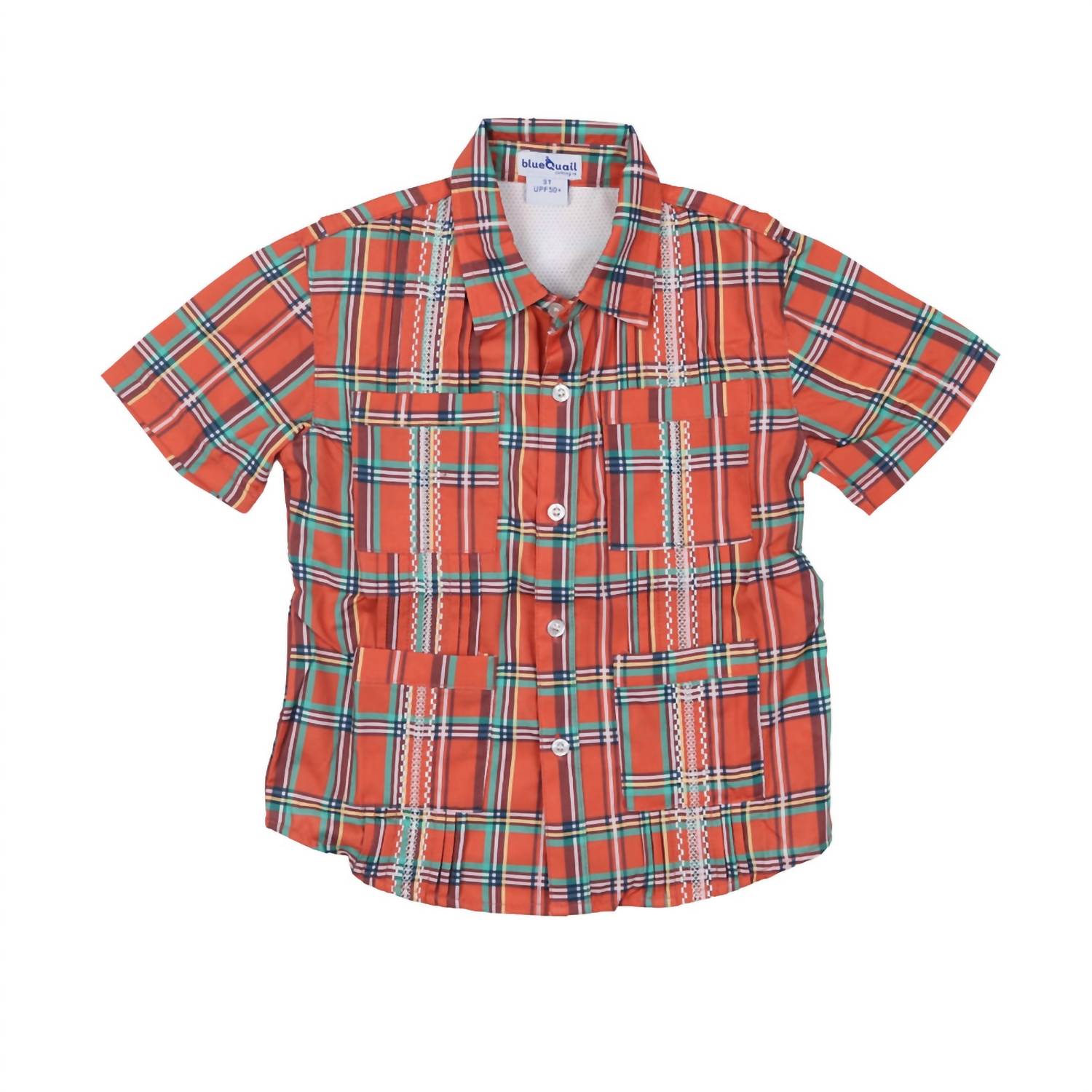 Celebrate the season with the Kids Classic Short Sleeve Shirt by Blue Quail Clothing Co., styled in a festive Christmas Plaid. Expertly crafted from polyester, this shirt is perfect for winter vacations and Christmas gatherings. With a trendy maximalist feel, it brings a joyful touch to any boy's wardrobe.