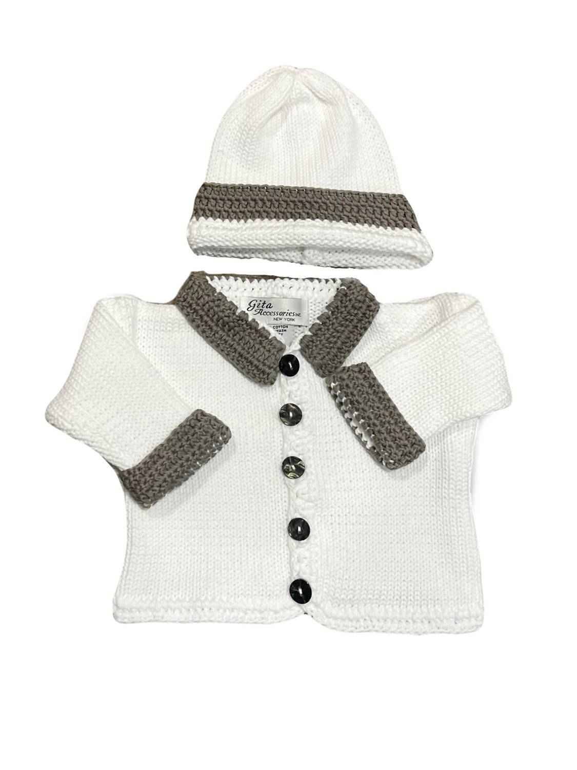 Introducing the Boy's 2pc Sweater With Collar & Cuff by Gita, perfect for a touch of elegance at holiday parties. This sweater is crafted from 100% cotton in a textured pattern, offering a soft and comfortable fit. Country of origin details are unspecified, but the care instructions recommend a gentle hand wash. Pair it with cotton pants for a complete and stylish fall ensemble.