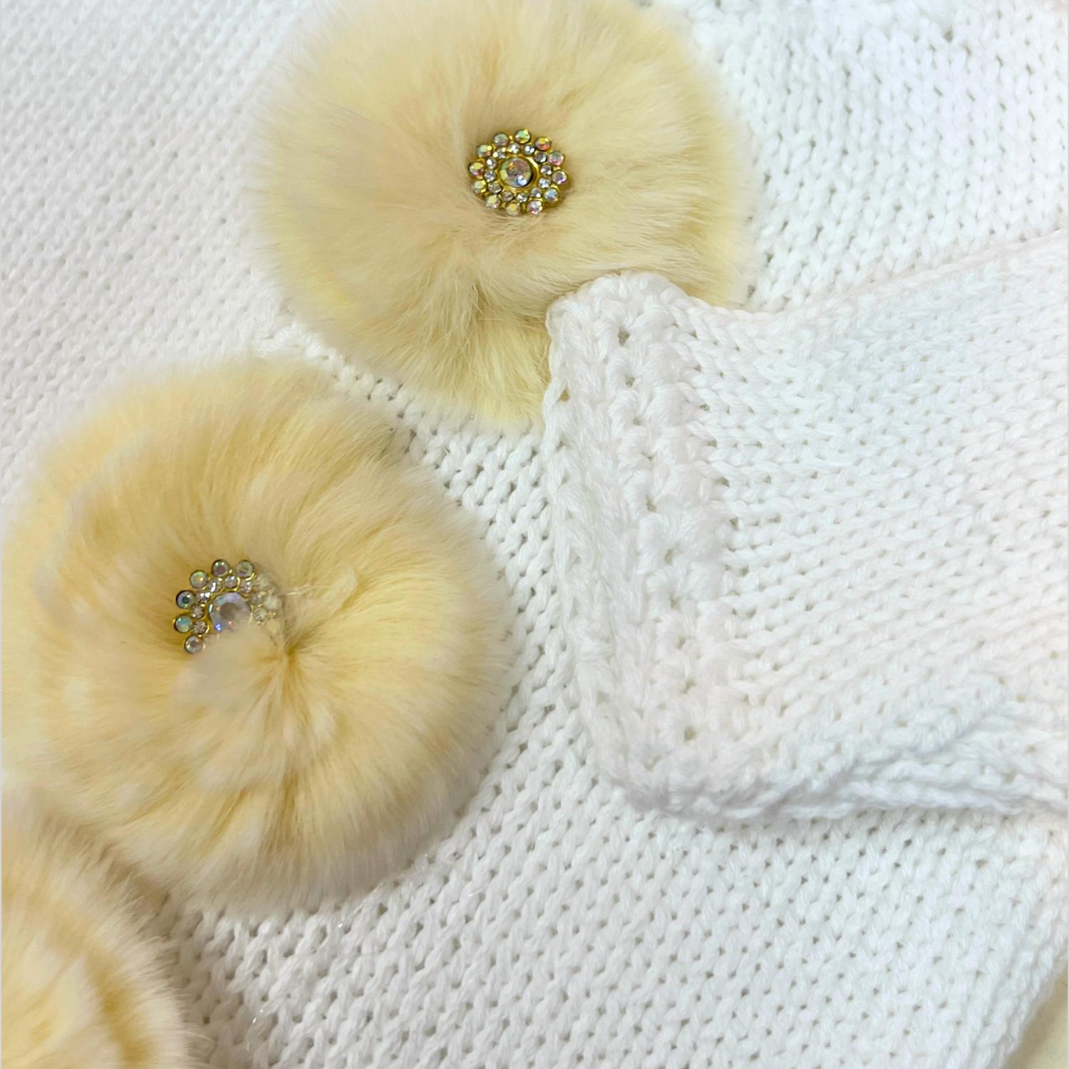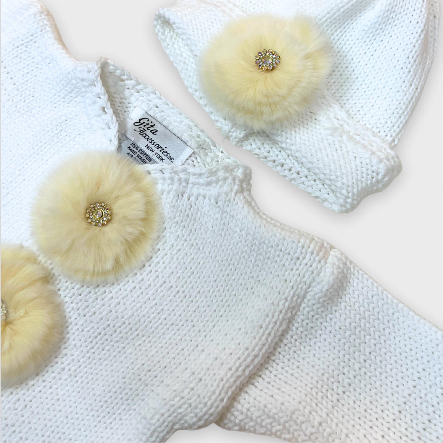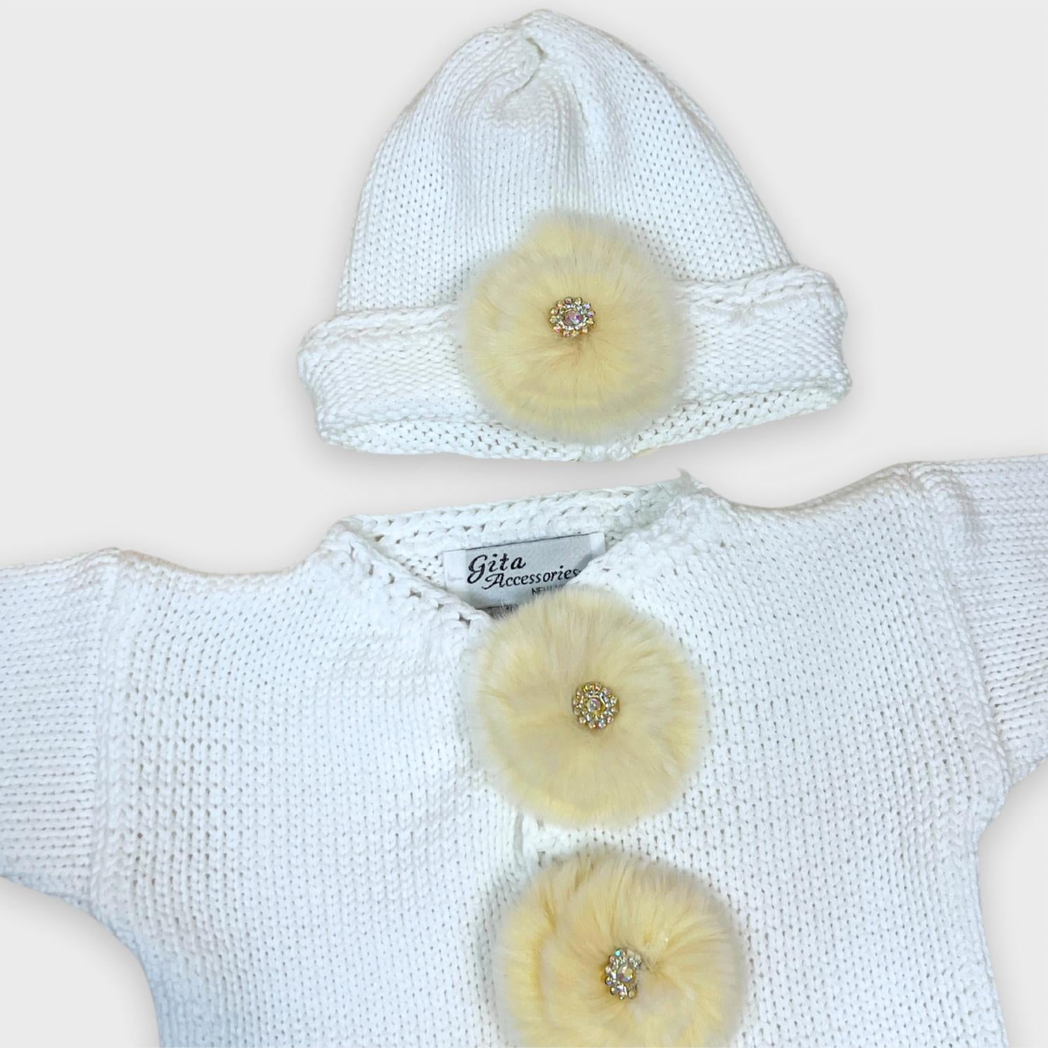Gita - Girl's 2pc Cotton Sweater With Rabbit Fur Button