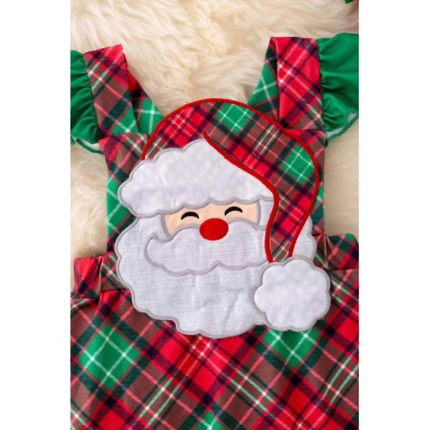 Kidscharm - Girls Santa Plaid Ruffle Santa Applique Jumper