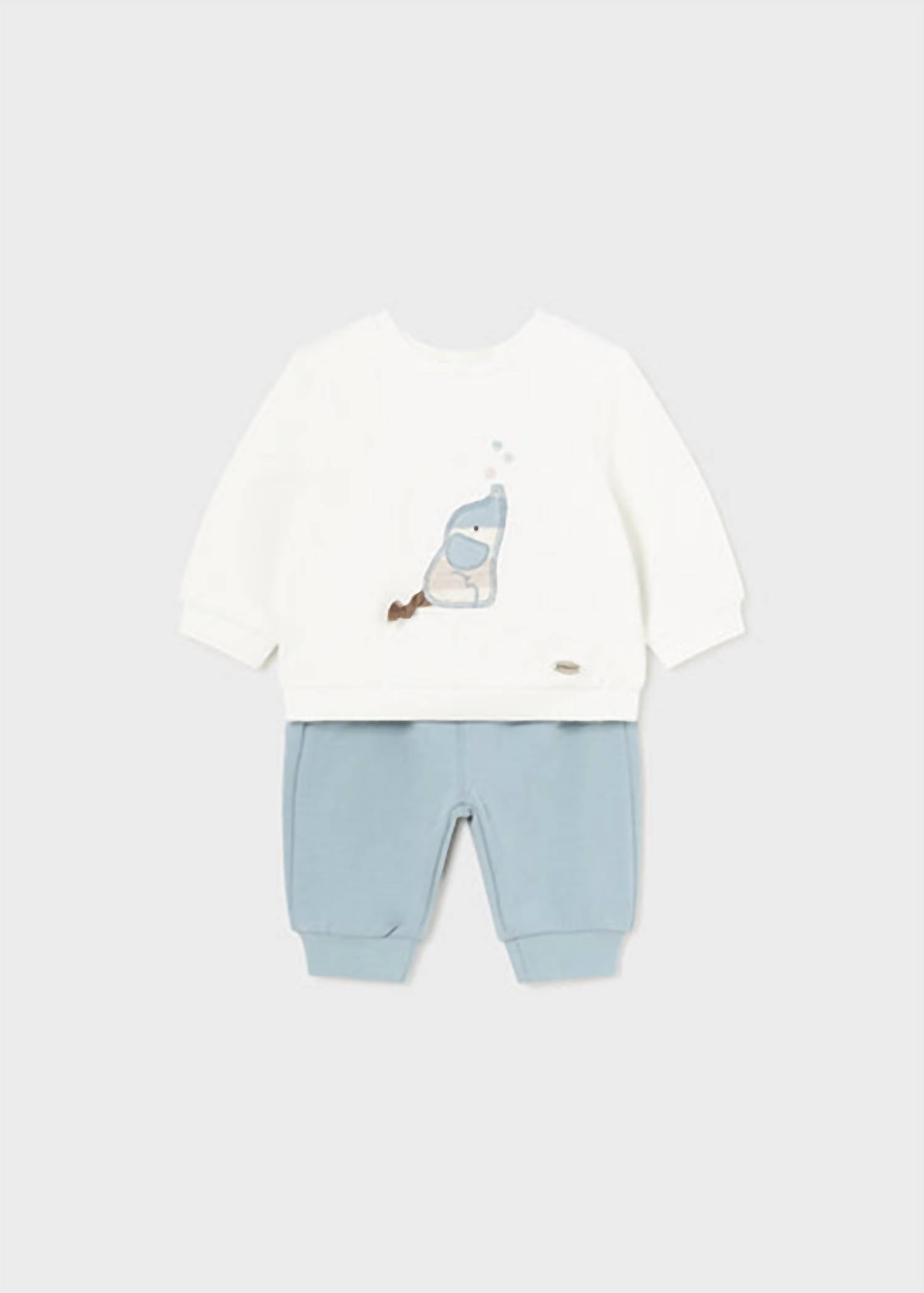 Introducing the Boy's Elephant Knit Set by Mayoral, a charming ensemble for your little one in a delightful white shade. The set includes a cozy pullover and long trousers, both made from a soft cotton blend consisting of 94% cotton and 6% elastane. Ideal for cooler days, the pullover features a multi-patterned design, and the trousers complement with the same composition. Care instructions: Machine wash cold, do not bleach, tumble dry low, cool iron if needed, and do not dry clean.