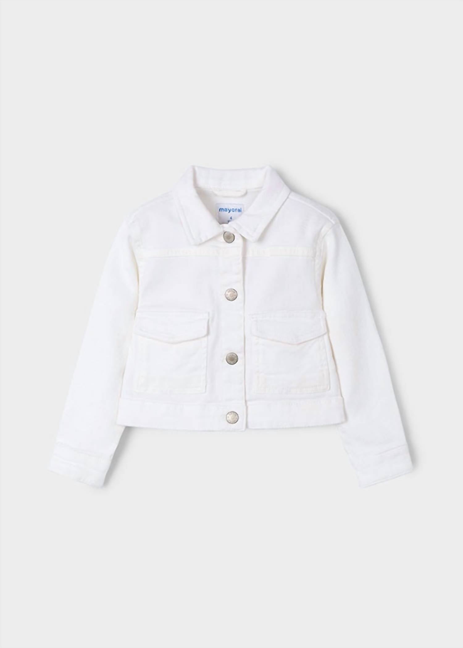 Mayoral presents the Stretch Twill Jacket in a refreshing natural hue, perfect for adding a light touch to your wardrobe. This casual jacket features cuffed sleeves, crafted from a cotton blend with 98% cotton and 2% elastane, ensuring a comfortable stretch and polished look. It boasts a versatile collared neckline and a convenient front snap button closure, complemented by flap patch pockets for added style. Care instructions include machine wash cold, do not bleach, tumble dry low, and cool iron.