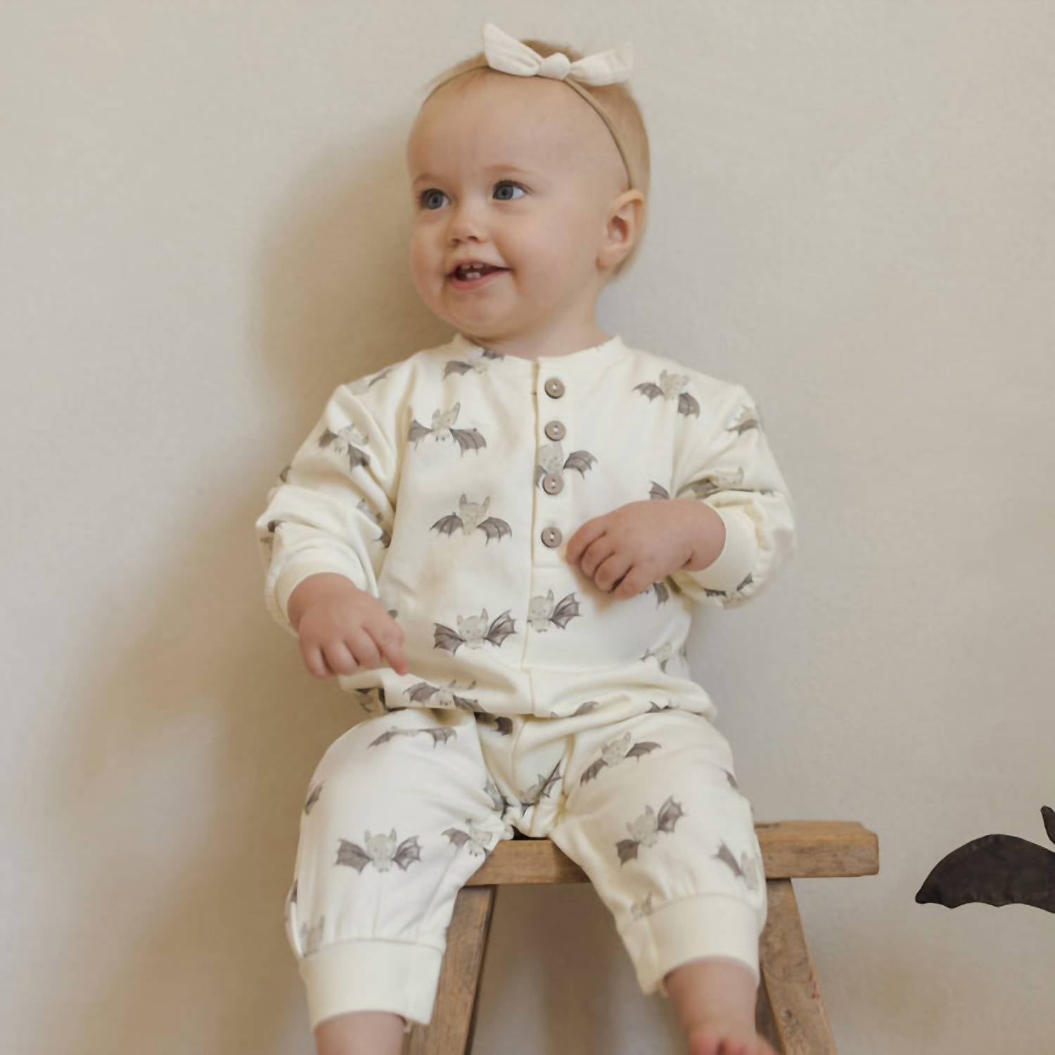 Quincy Mae - Baby's Relaxed Fleece Bats Jumpsuit