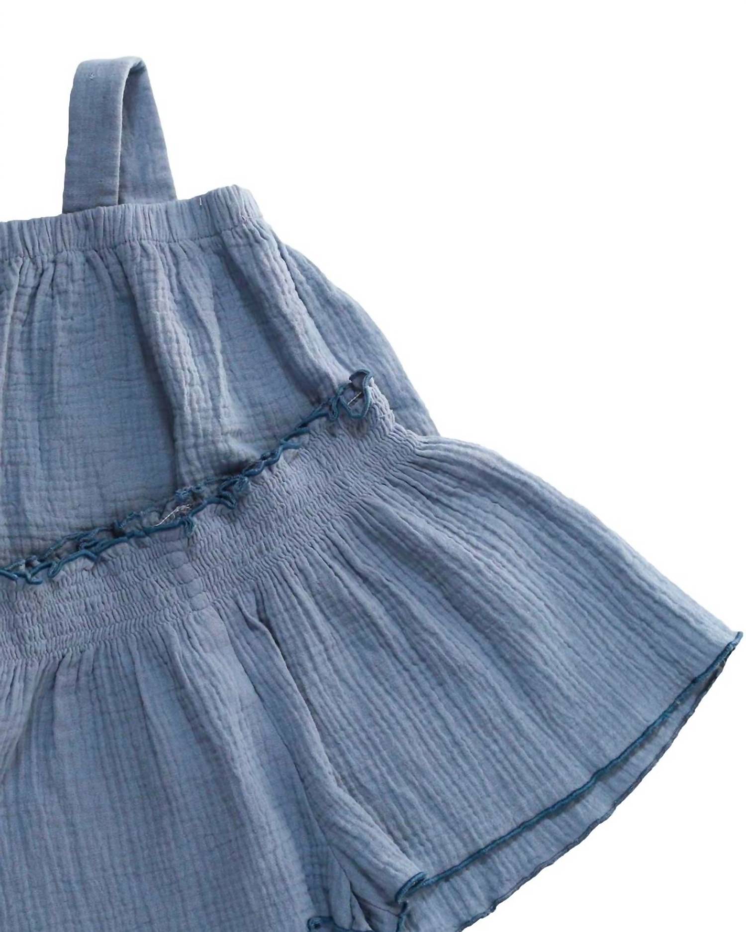 Introducing the Girls' Paperbag Set by Remington Road in a charming dusty blue shade, designed for versatility and style this summer. This two-piece set offers a lightweight pullover tank with thick straps featuring an elastic band chest and adjustable strap length, paired with easy-to-wear bottoms that boast a smocked elastic waistband and a flowy silhouette. Made from a cotton blend comprising 65% Cotton and 35% Polyester, this set promises comfort and breathability. Care: Machine wash cold on a gentle cycle, do not bleach, tumble dry on low, and medium iron for best results.
