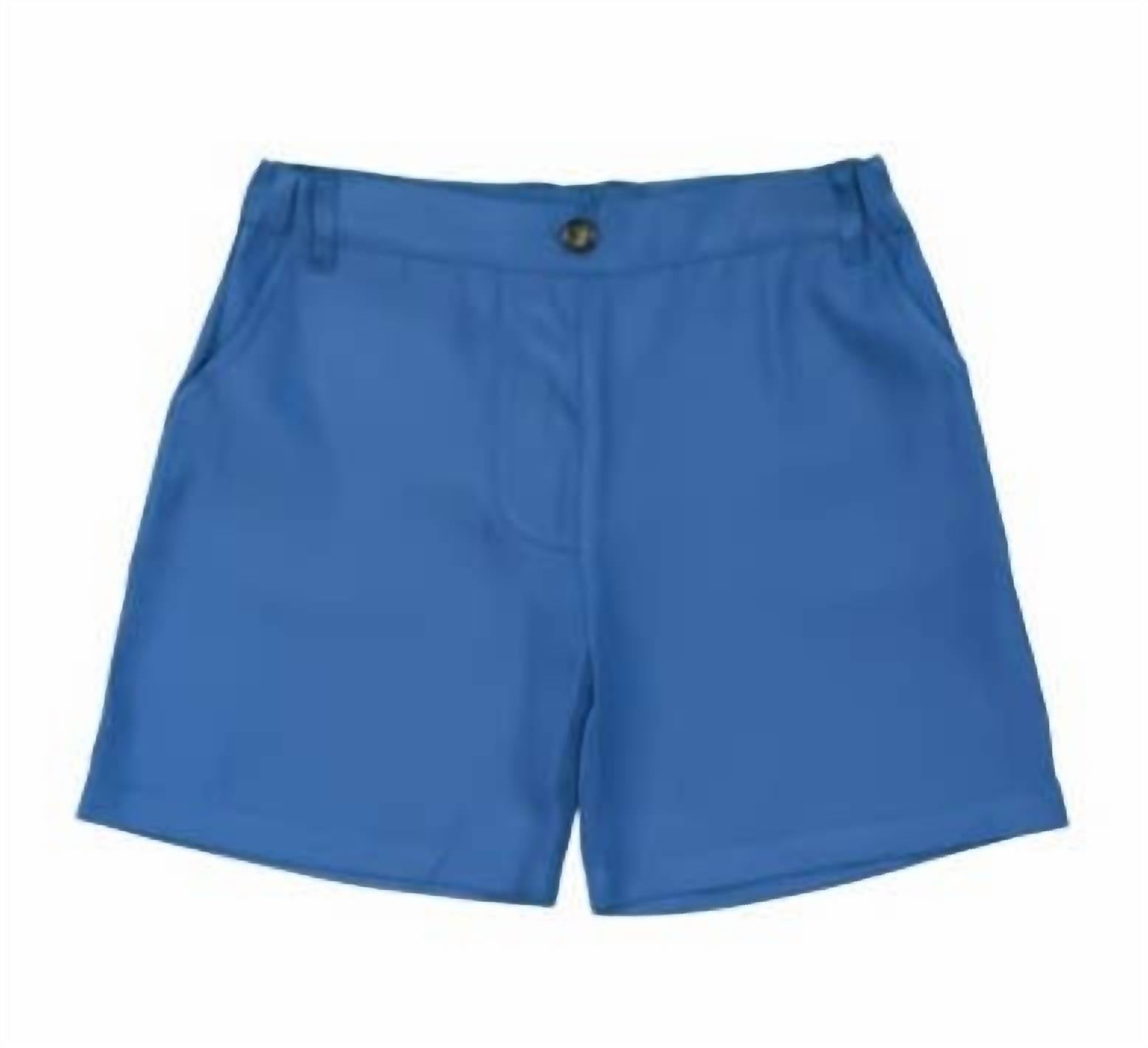 Introducing the Boys Ponce Performance Shorts by Saltwater Boys Co., perfect for summer travel with their solid blue, minimalist design. Crafted from durable polyester, these shorts ensure comfort and flexibility. They feature an elastic waistband with adjustable tabs for a custom fit. Care instructions recommend hand washing and line drying to maintain their quality.