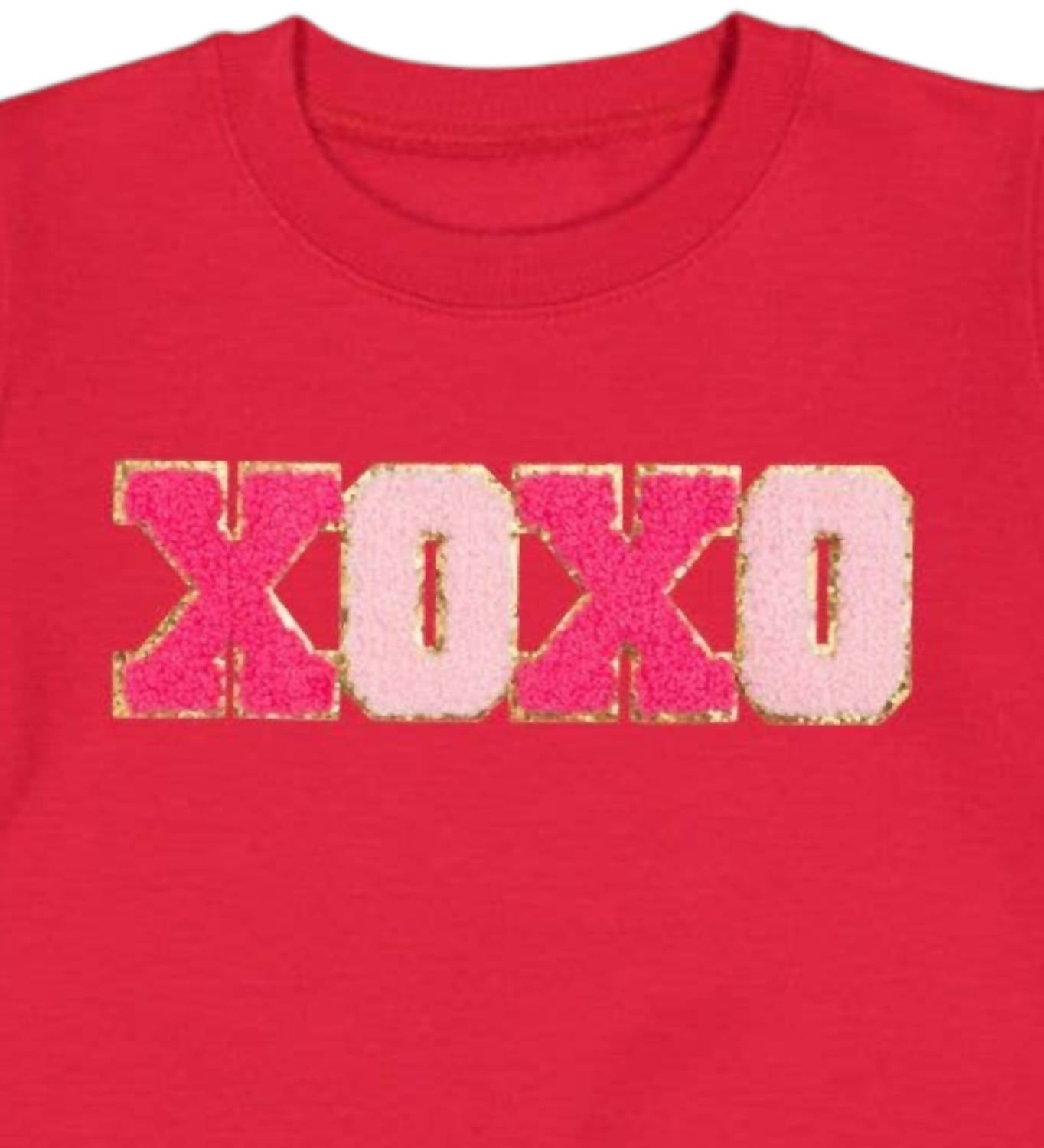 Celebrate love with the Kids XOXO Patch Valentine's Day Sweatshirt by SWEET wink, designed in a vibrant red hue. This toddler unisex sweatshirt features a charming light and hot pink chenille patch with a gold glitter outline, crafted from a cozy 60% cotton and 40% polyester fleece. Designed for all-day comfort, it includes a tagless neck label and machine washable convenience; simply wash inside out and lay flat to dry. Perfect for your little one's fall adventures or Valentine's celebrations.