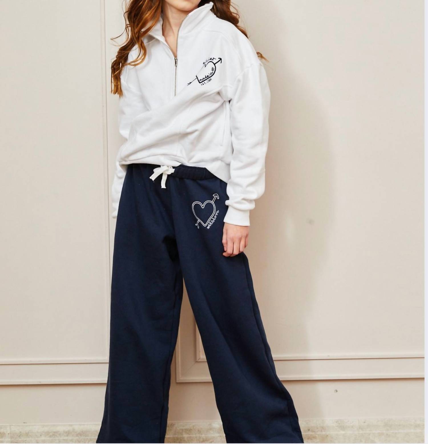 Introducing the Girls Cami Jogger by THEME, the ultimate in cozy loungewear for a stylish autumn. Crafted from the softest French terry, these joggers promise warmth and luxurious comfort, perfect for lounging at home or out and about. The standout feature is the special embroidery of the iconic Heart with Arrow, bringing a unique touch to this minimalist, solid-colored design in Atelier hue. Ideal for back to school, these joggers also fit right in for New Year's Eve celebrations. Care: Follow the unspecified wash and dry instructions to maintain quality.