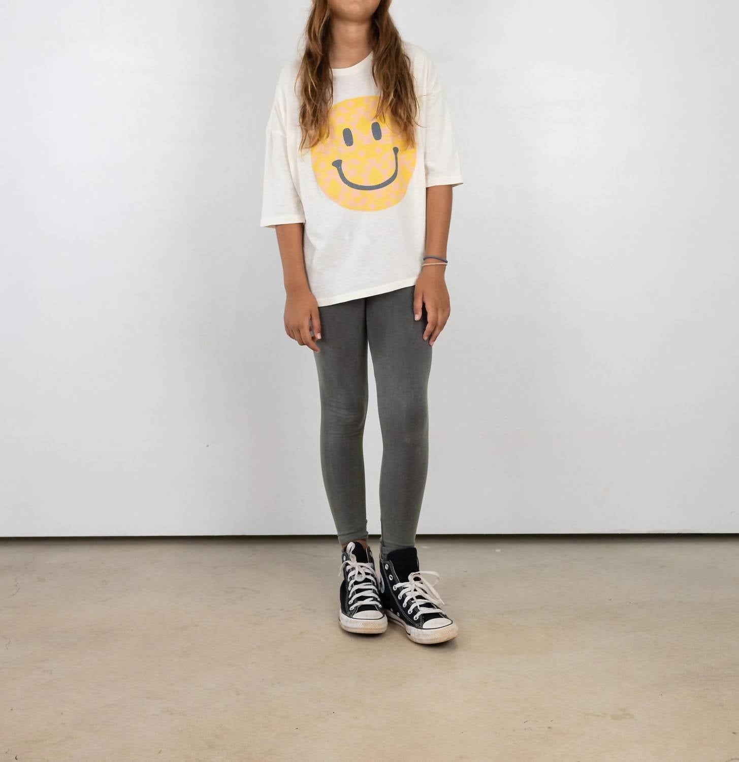 Introducing the Cosmic Pull On Leggings by TINY WHALES, perfect for effortless style in a mineral black hue. Designed for girls, these leggings offer a stretchable composition of 95% cotton and 5% spandex with a seamless elastic pull-on waistband and full-length fitted body. Originating from undefined, they are crafted for minimalist fashion with a solid pattern, ideal for the back-to-school season.