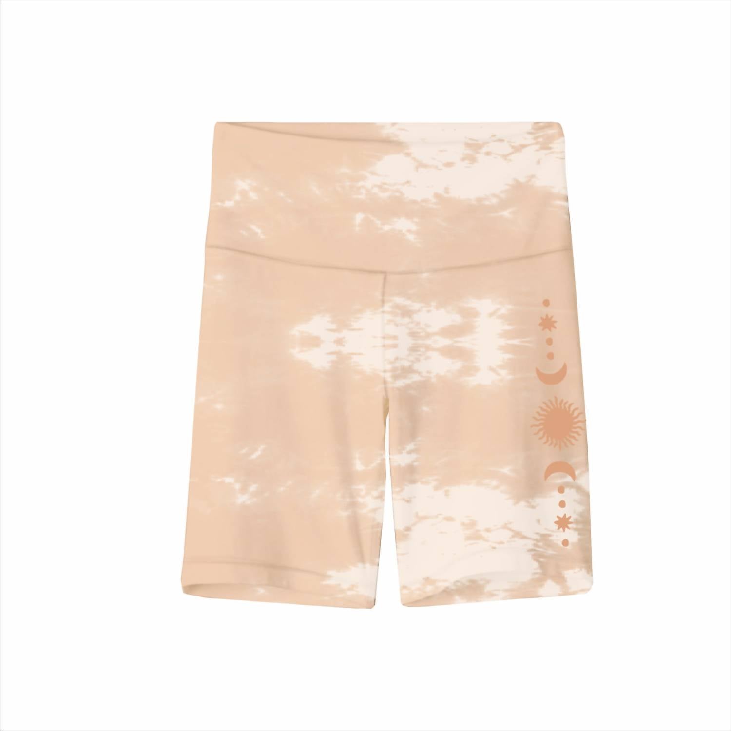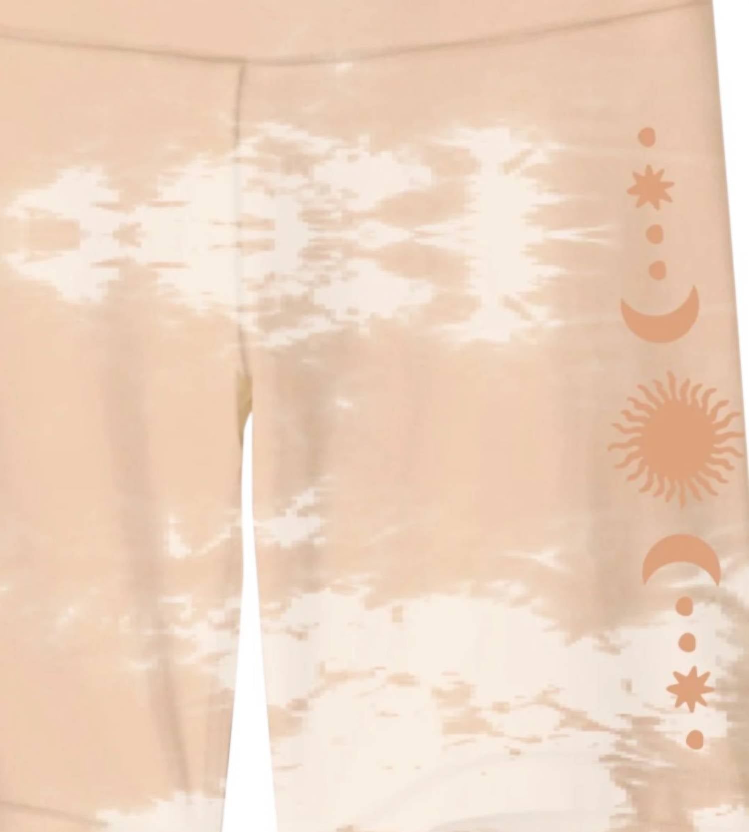 Embrace fun and comfort with the Girl's Rise And Shine Bike Short by TINY WHALES, designed for spirited summer days. These multi tie-dye shorts feature a wide elastic pull-on waistband and a celestial screenprint accent on the front right leg. Composition: 100% Cotton. Care: Machine wash cold, do not bleach, line dry, cool iron inside out.
