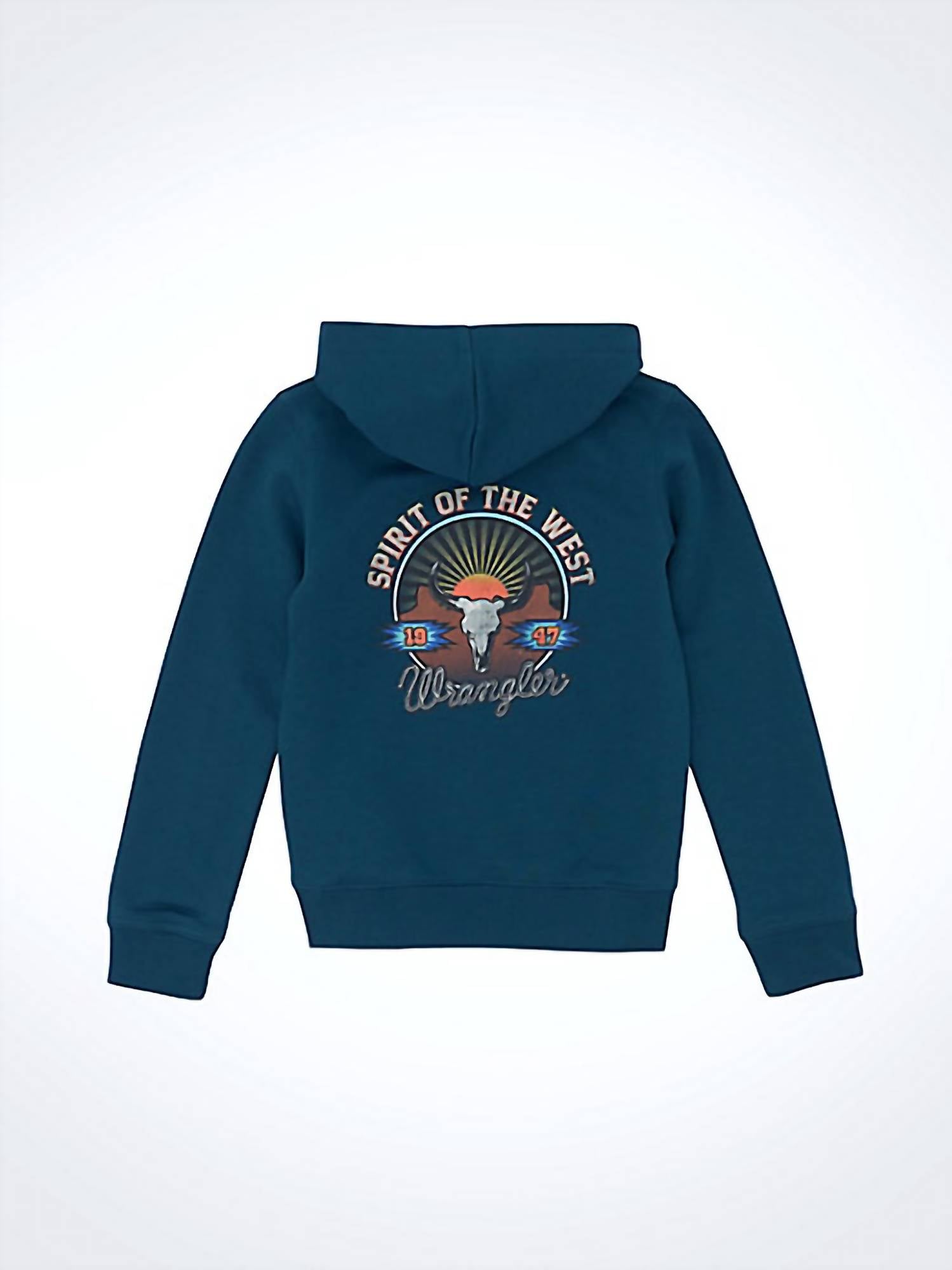 Boys western back graphic pullover hoodie fit regular lining fleece sleeve length long hooded with adjustable draw cord, cuffed rib