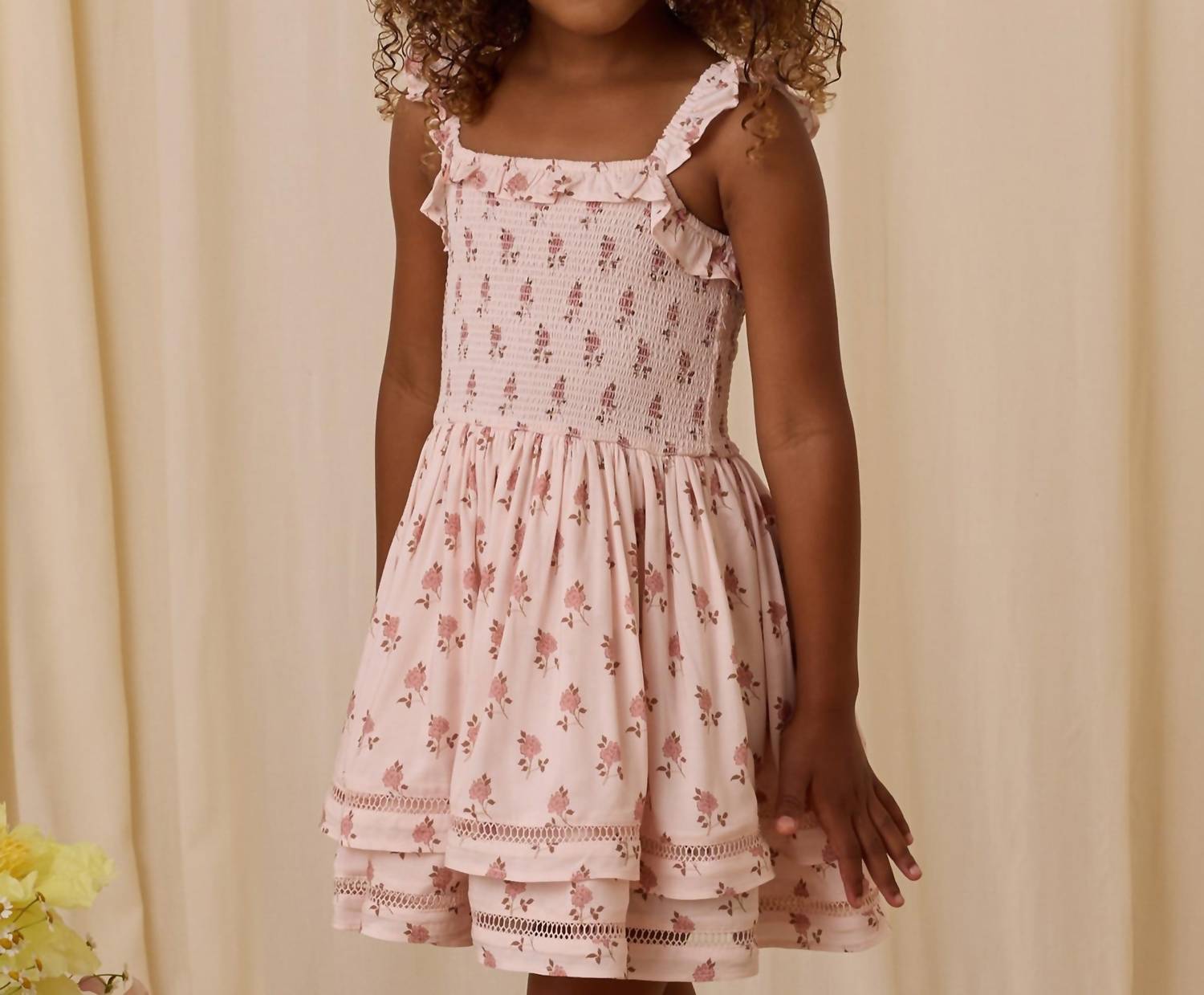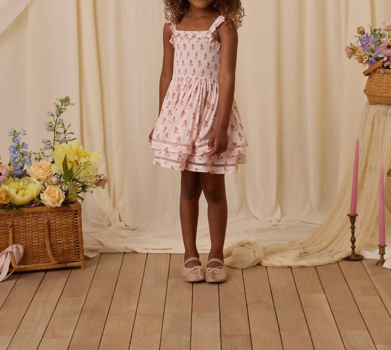 Introducing the Birdie Dress by NORALEE, a charming piece designed for twirling with its flowy skirt and smocked bodice. This delightful French Rose patterned dress on a blush hue features ruffle straps and includes coordinating bloomers for sizes 12M - 2Y. Made from 100% viscose, it's perfect for holiday parties and spring occasions. Care instructions recommend a cold machine wash and line dry to maintain its elegant appearance.