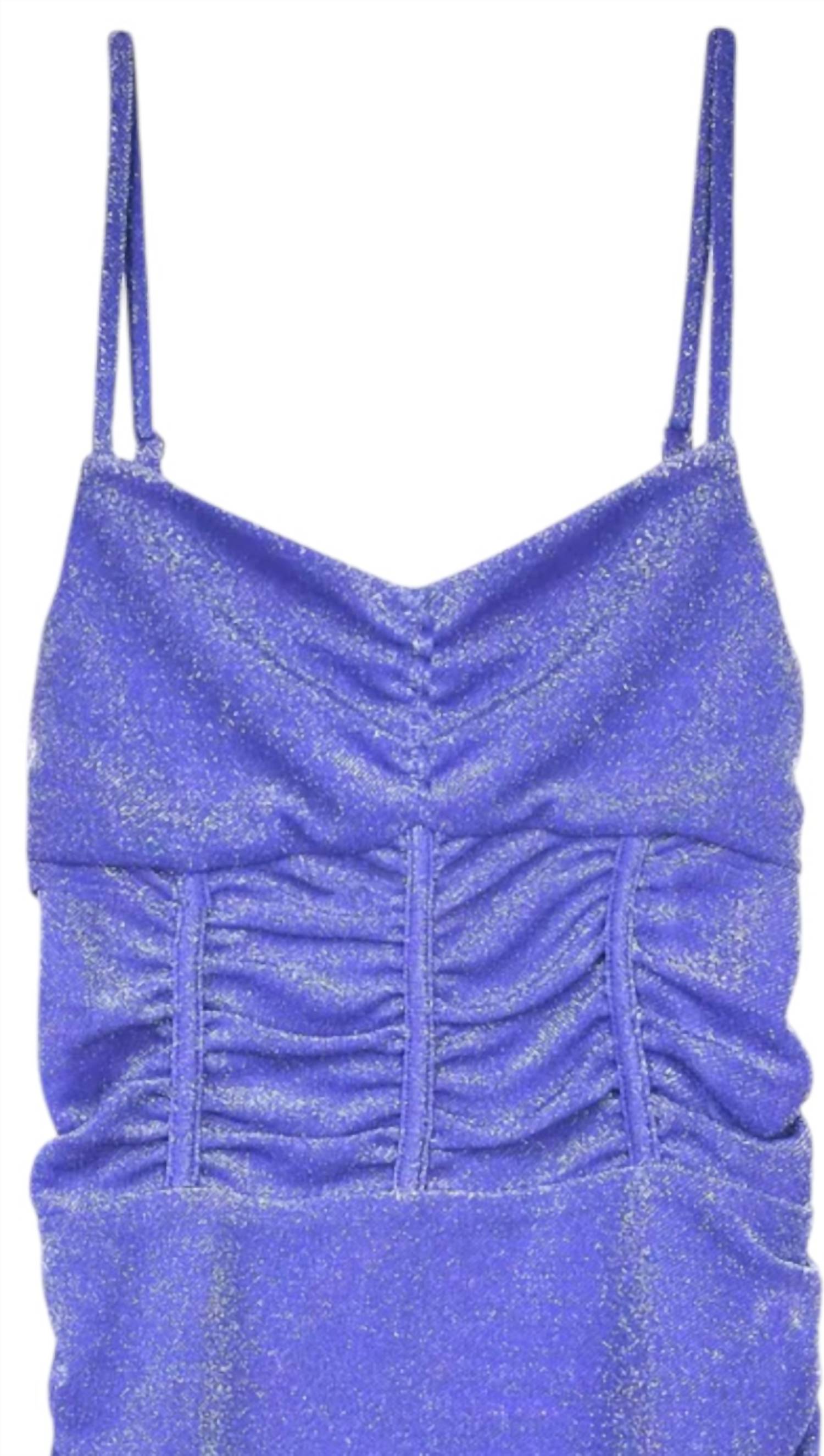 Introducing the Girls Tween Lola Sparkle Dress by Katie J NYC, a dazzling choice for your fashion-forward tween. This periwinkle dress features adjustable shoulder straps and a back zipper entry, making it a breeze to wear. Crafted with sparkle mesh fabric and ruching details throughout, it boasts corset-inspired seaming on the bodice for a unique touch. Sizes available are S/M (7/8), MD (10), LG (12), and XL (14), ensuring a comfortable fit for every child.