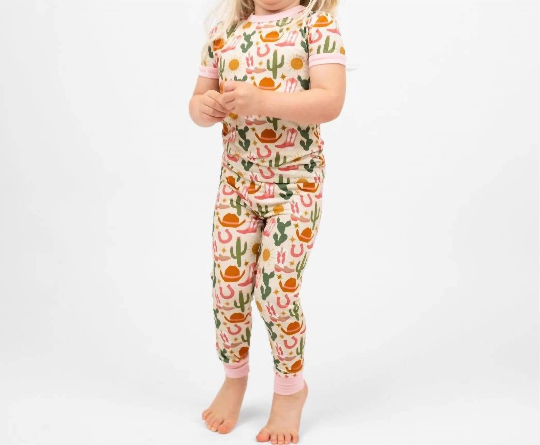 Emerson And Friends - Girls Hey Y'all Western Bamboo Short Sleeve Pajama Pants Set
