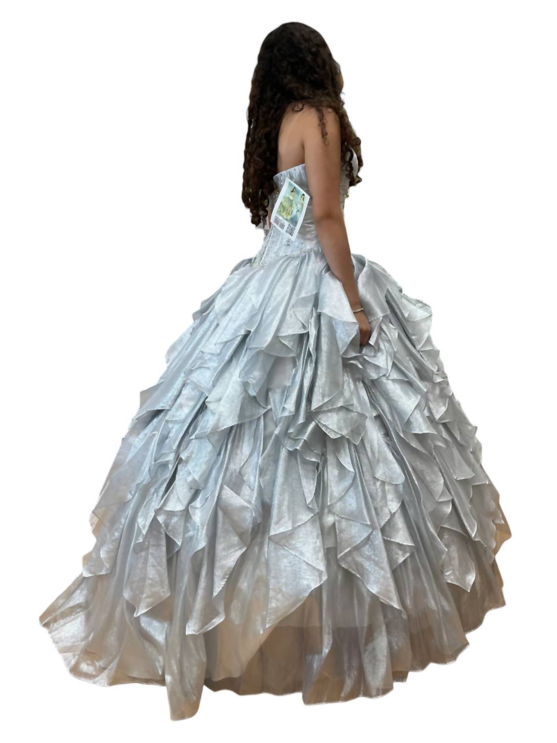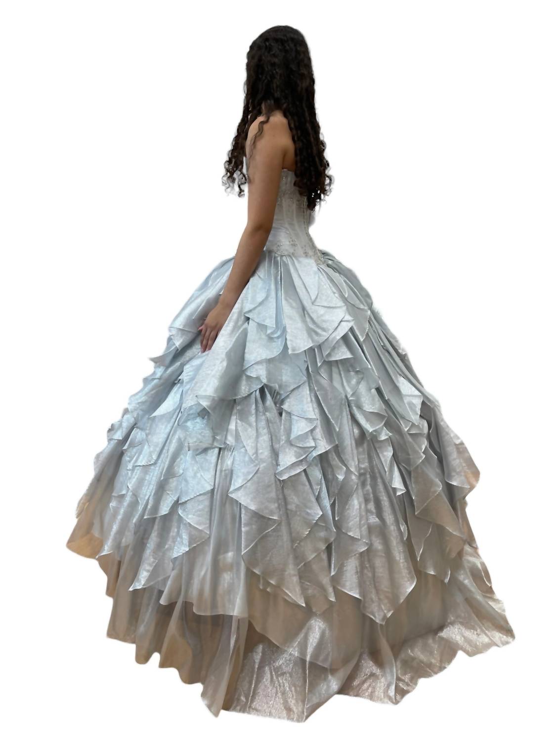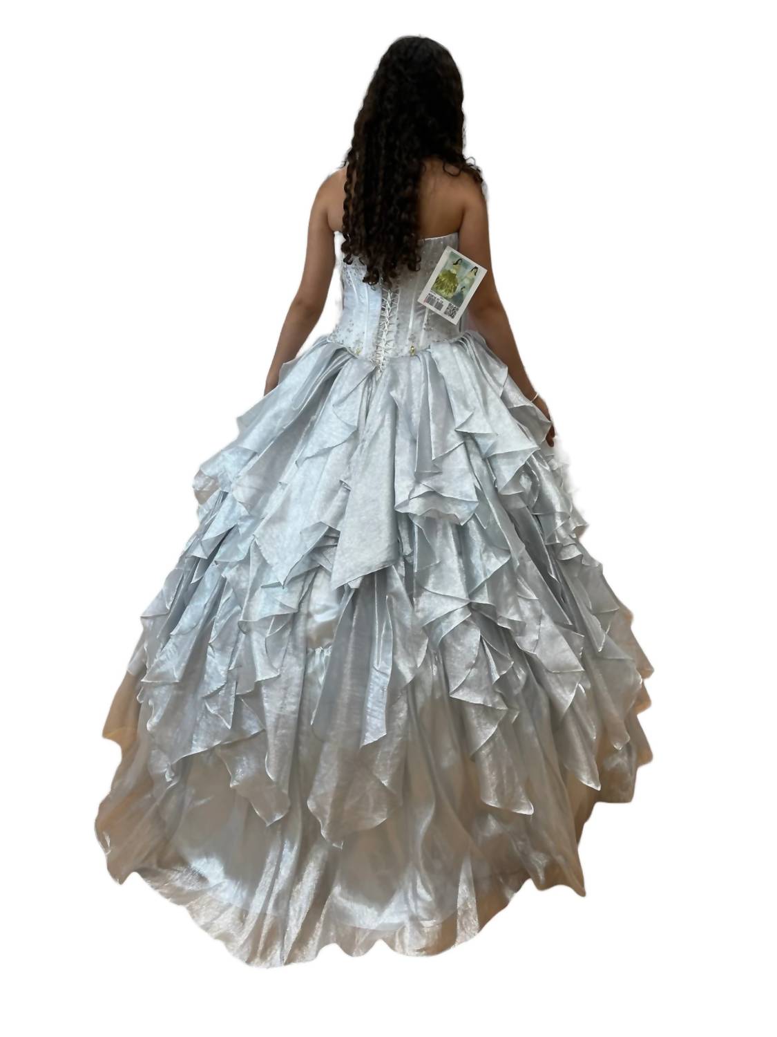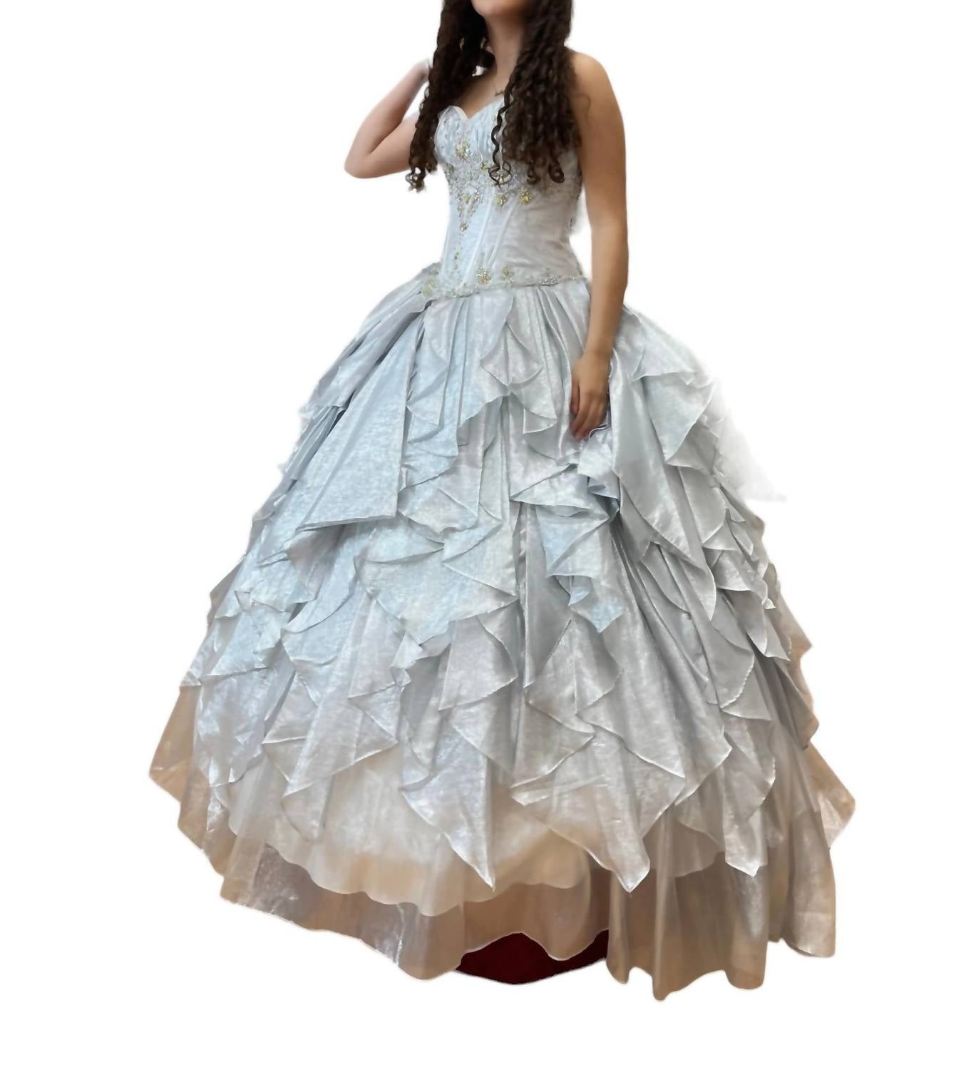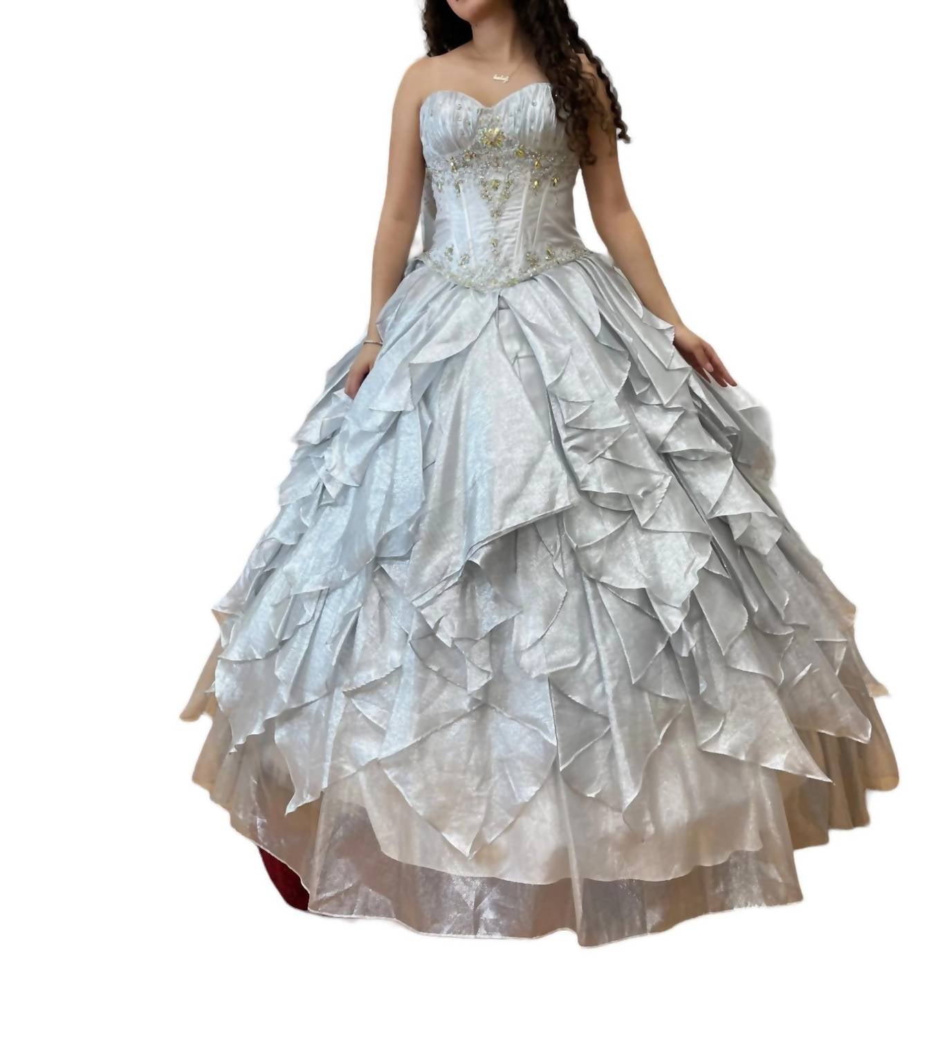 This Off Shoulder Quinceañera Dress features an off-shoulder design and intricate patterned detail. Its figure-flattering silhouette ensures a confident and stunning appearance, perfect for making memorable moments on your special day. Measurements B38, W30, H42.