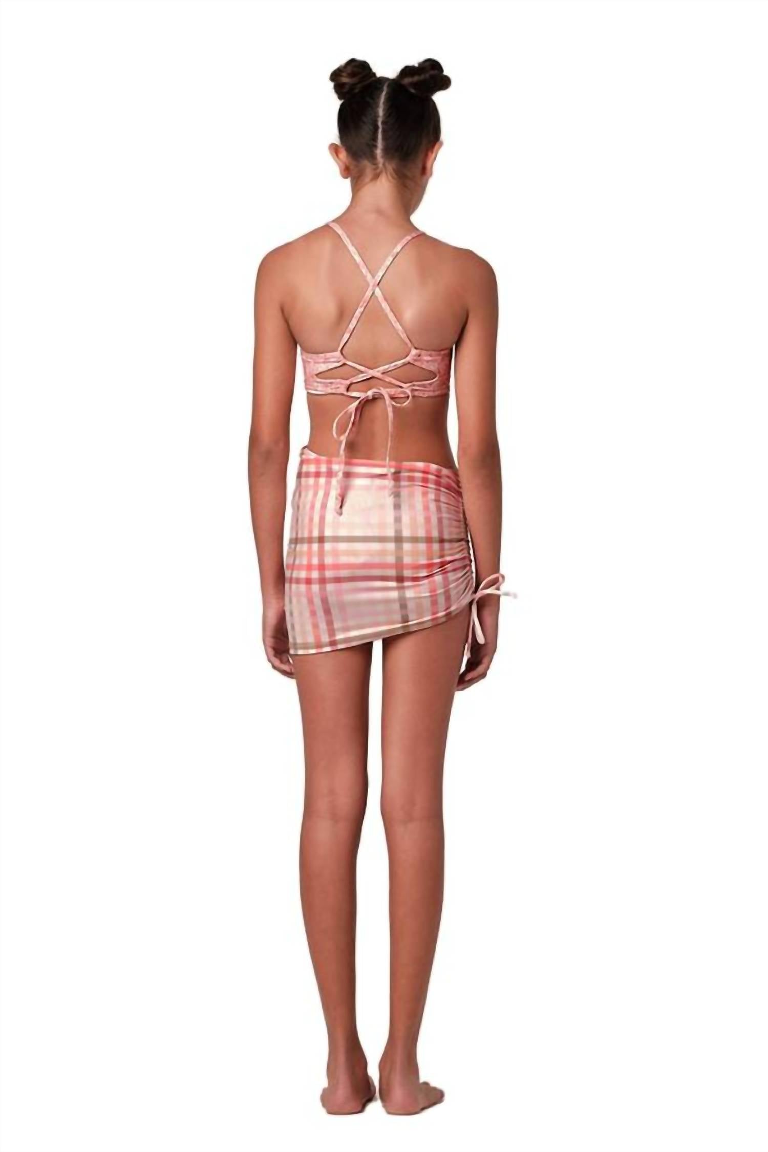 Dive into summer style with the Girls Scrunch It Cover Up by Submarine, perfect for little girls looking to sparkle by the pool. This cream-colored coverup features a charming gingham pattern and a flattering scrunch design for added flair. Care: Hand wash and line dry.