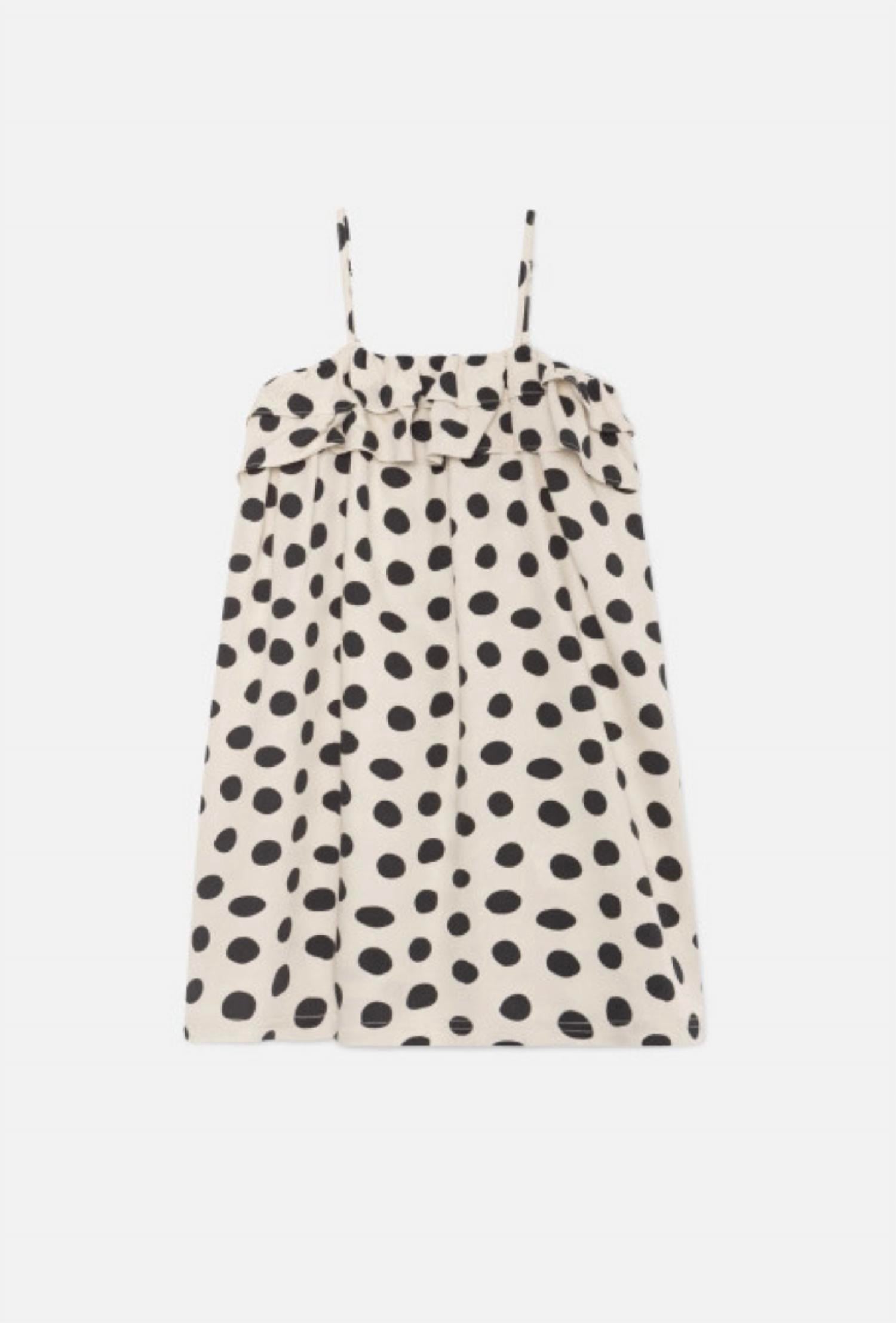 Introducing the Girl's Dot Sundress by Compania Fantastica, a delightful addition to any young fashionista's wardrobe. Crafted from soft, breathable viscose, this sundress promises comfort and style in every wear. Ideal for sunny days, picnics, or casual outings, this sundress effortlessly combines fashion and fun. Whether she's playing in the park or enjoying a family brunch, your little one will feel as wonderful as she looks in this stylishly crafted piece by Compania Fantastica. 100% Viscose.