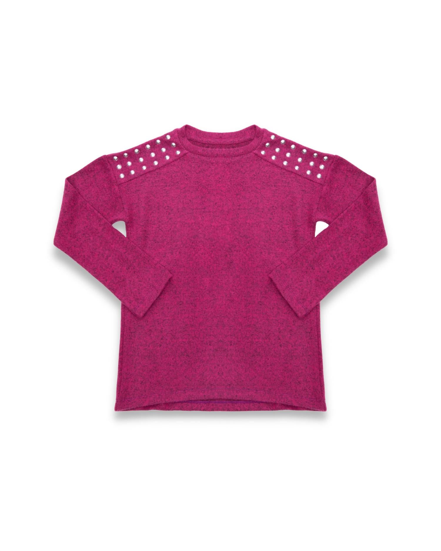 Introducing the Girls Long Sleeve Studded Sweater by MIA, a stylish piece in a vibrant berry hue perfect for adding a touch of edginess to any outfit. This textured sweater offers a comfortable and fashionable fit with a composition of 70% cotton and 30% polyester. The pull-on design and crewneck cut make it ideal for travel or Thanksgiving gatherings. Care instructions include machine washing and laying flat to dry.