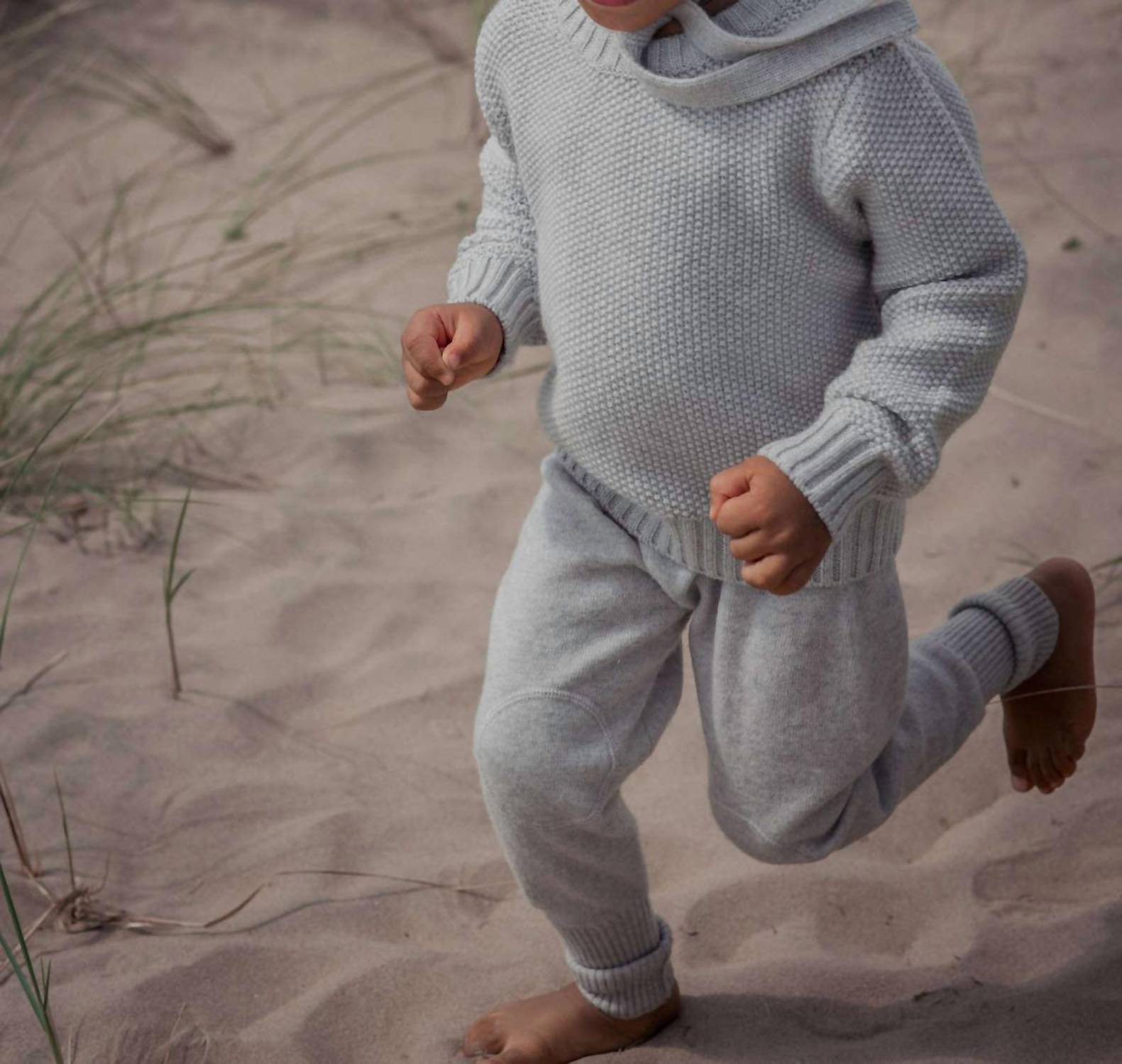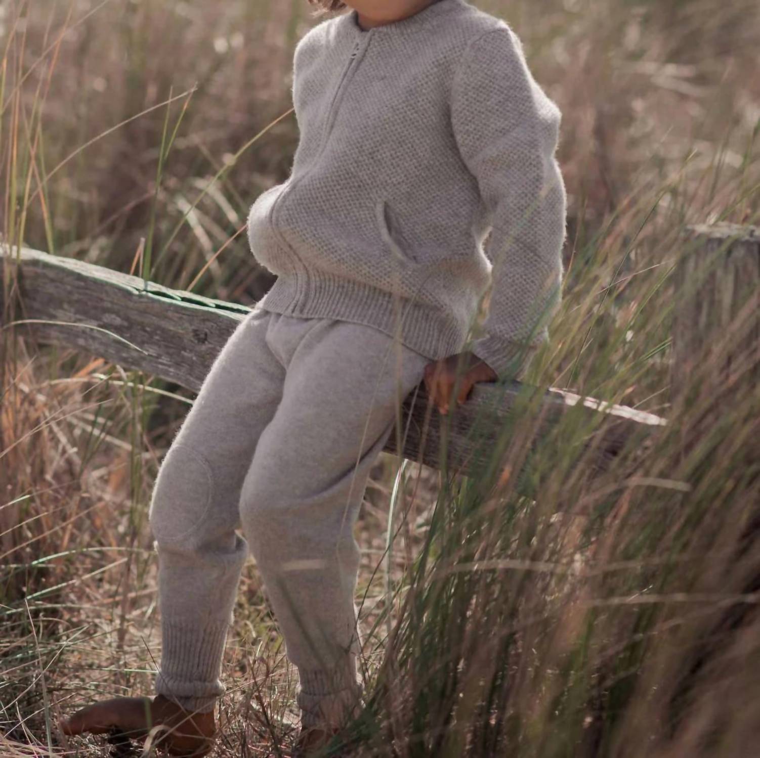 Keep your little one stylish and warm with the Boy Pants by MIKA & MILO, crafted from 100% pure cashmere sourced from Inner Mongolia. These cozy two-ply pants in gray feature knee pads for durability and fold-up cuffs that adjust as your child grows. Made for comfort and practicality, they're perfect for travel or any fall adventure. Team with jumpers or jackets for a head-to-toe minimalist look.