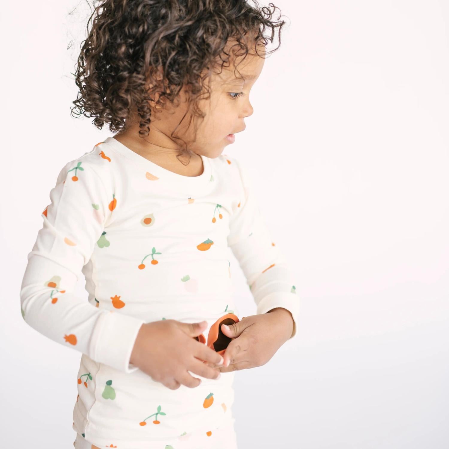 Discover the Farmer's Market Pajamas by Polished Prints, crafted from a super soft and flexible blend of 97% organic cotton and 3% spandex. Perfect for little ones, these pajamas feature a patterned design printed with eco-friendly water-based inks, offering both style and comfort. Designed in collaboration with illustrator Annabel Gemmel, they are ethically made and lightweight, ideal for spring or vacation occasions. Enjoy this versatile unisex pajama set in a minimalist white color, making bedtime a delightful experience.
