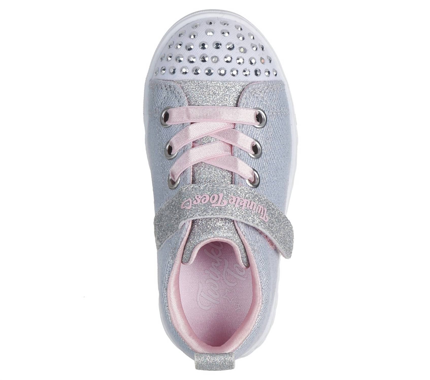 Introducing the Skechers Girls Heart Steps Shimmer Sweetie Shoes, a must-have for your toddler's spring collection. This sneaker features a dazzling shimmering pink and gray design with a round toe and flat heel that adds both style and comfort to tiny feet. The lace-up closure ensures a secure fit for all her adventures, and the cushioned insoles offer comfort ideal for travel. Perfect for Y2K trends or New Year's Eve occasions, these sneakers promise to make your little one stand out.