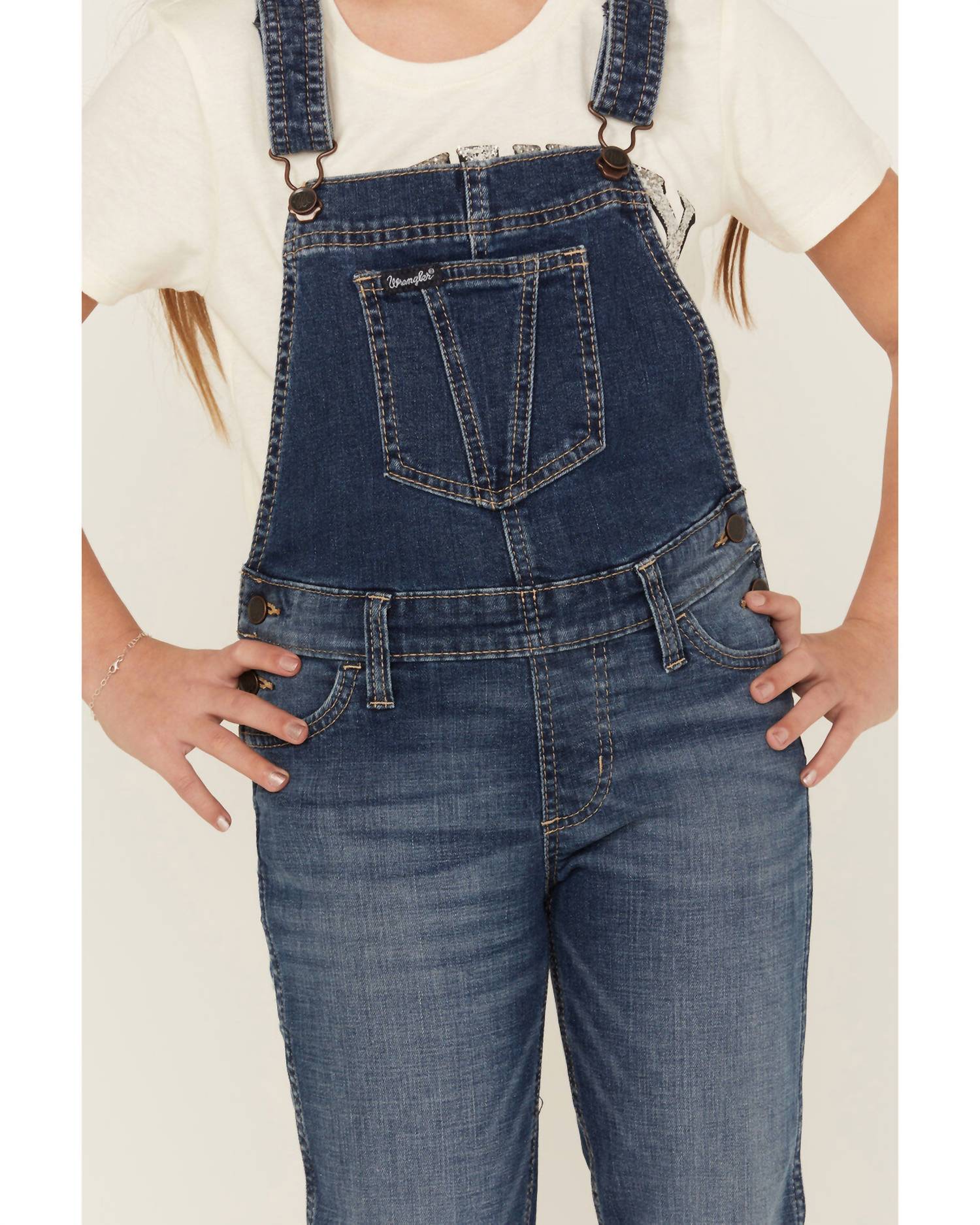 These girls' denim overalls combine classic Western style with modern durability, perfect for play or casual wear. Featuring a buckle loop closure, adjustable button waist, belt loops, and five-pocket styling, they offer both functionality and comfort. Crafted from 98% cotton and 2% elastane, the medium-wash denim is finished with whiskering, hand-sanding details, and straight-leg hems for a timeless look.