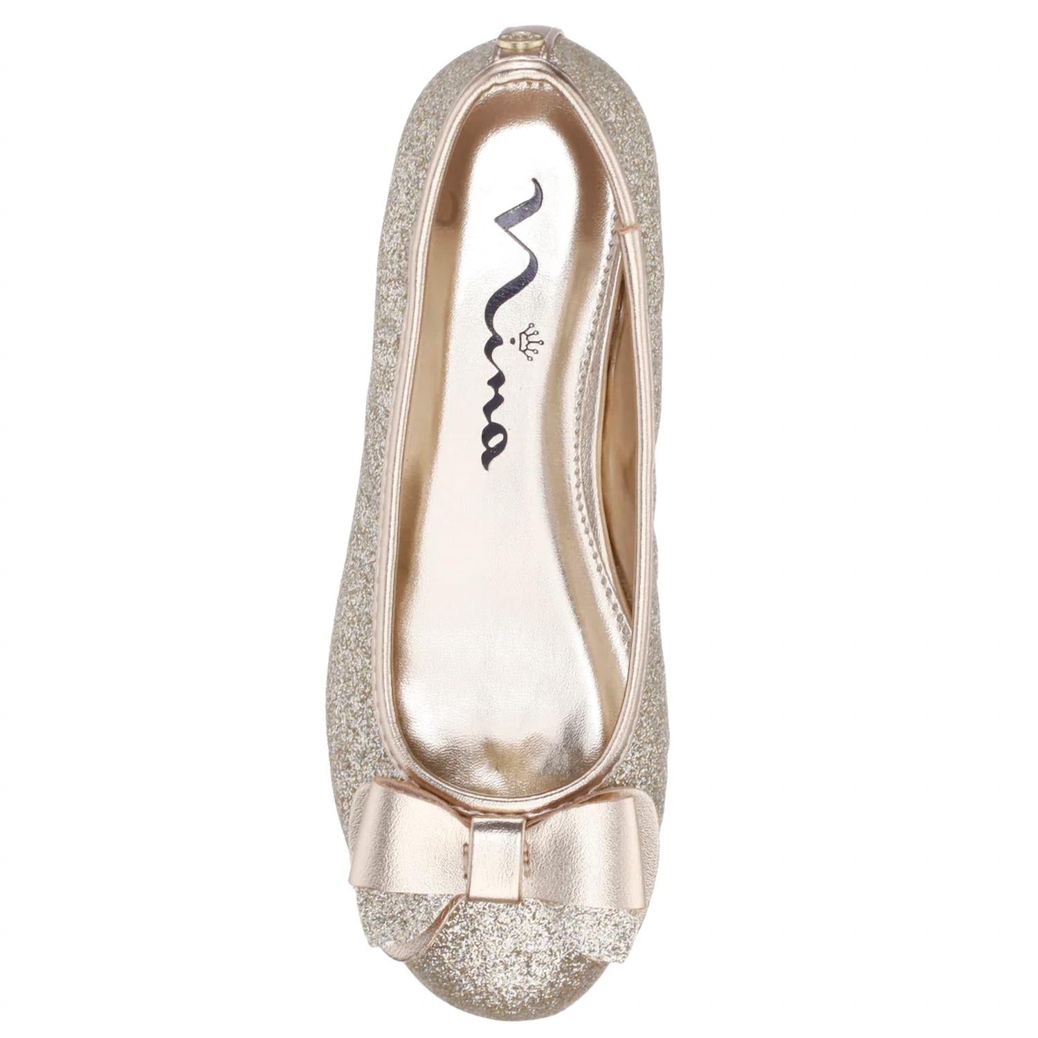 Elevate your toddler's style with the Kid's Kenzee Shoes by Nina, a must-have addition to any wardrobe in dazzling black. These ballet flats feature an eye-catching glitter and patent vegan leather composition, adorned with a charming decorative bow. They offer a cushioned memory foam insole and a flexible non-slip TPR outsole, ensuring comfort and safety with every step. Made with a man-made upper and lining material, this round toe, flat heel design is perfectly crafted for little girls' special occasions.