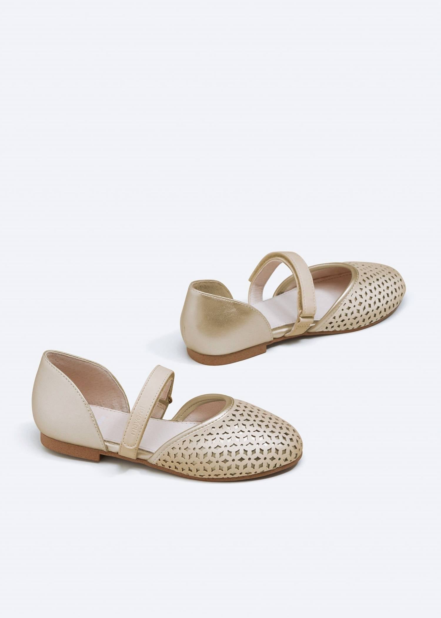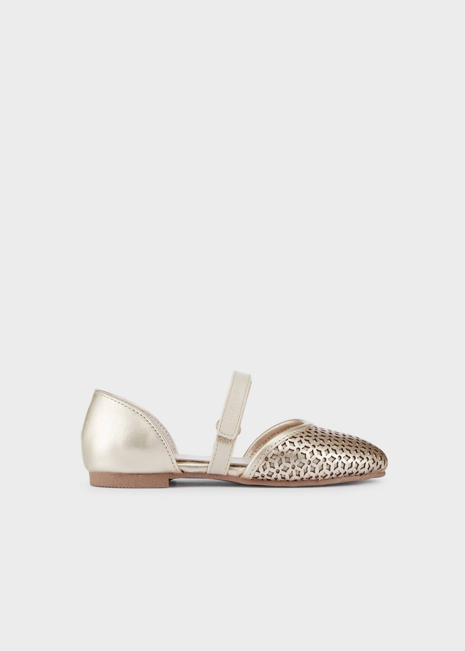 Discover the elegant Big Girls' D'orsay Flat by Mayoral, perfect for holiday parties this summer. These flats in a stunning rose gold feature a round toe with floral cutout accents, complemented by a smooth faux leather heel. Made from 100% Polyurethane for the court and instep, 100% pigskin lining and insole, and a textured sole crafted from 100% thermoplastic rubber. The adjustable hidden Velcro strap ensures a snug fit, adding a touch of quiet luxury to any Easter ensemble.