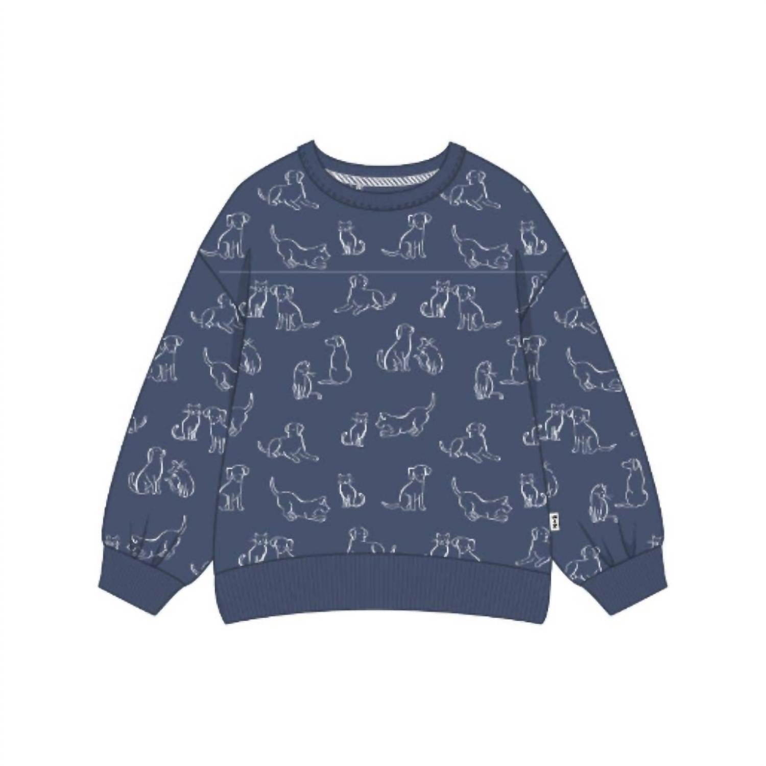 Presenting the Unisex Frankie Sweatshirt by Sammy + Nat, an adorable piece in lightweight indigo navy blue. This sweatshirt features a playful animal pattern, making it a charming addition to any wardrobe. Designed for comfort and style, it’s perfect for any casual occasion. Care instructions are not provided, so we recommend referring to standard practices for sweatshirts.
