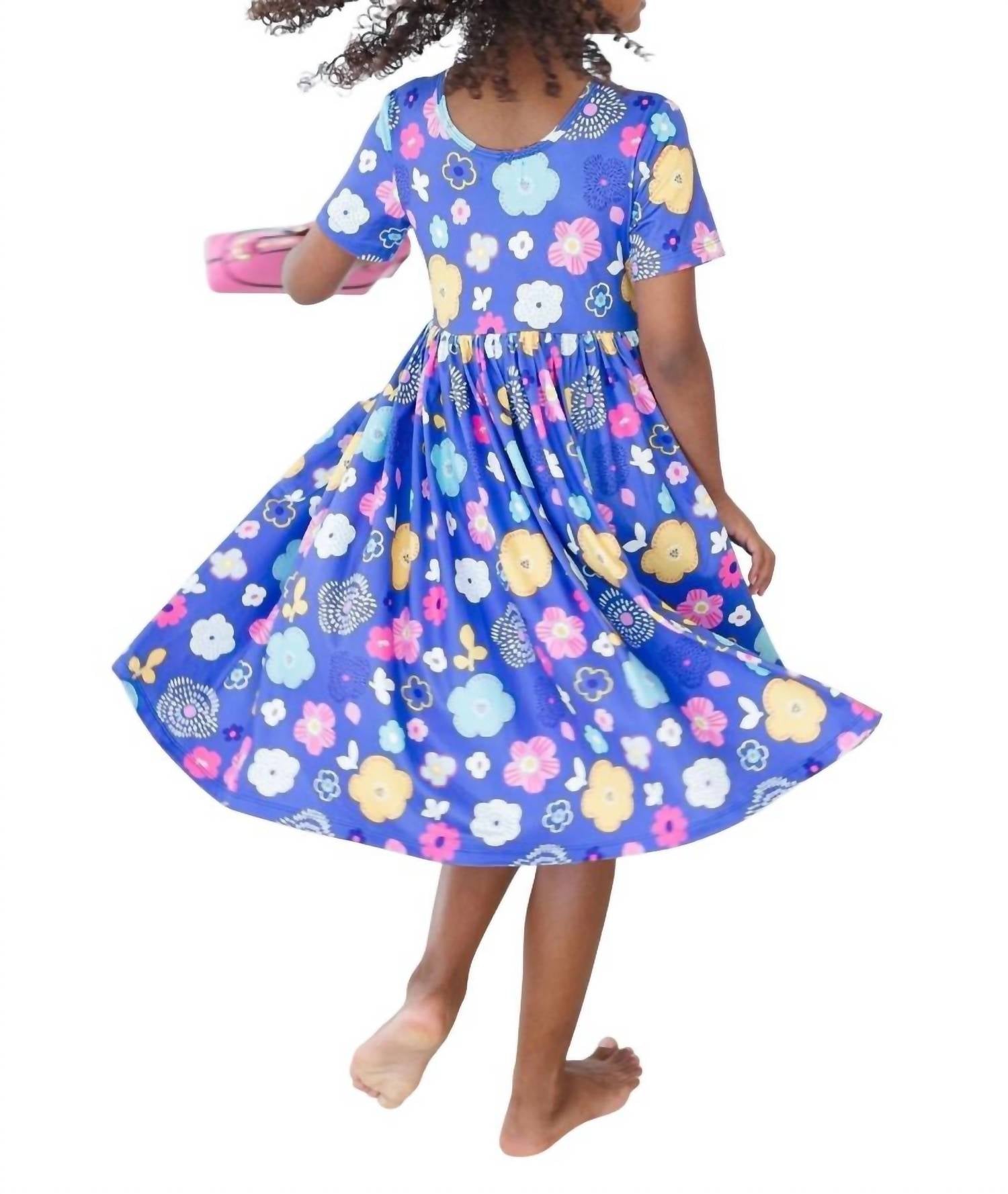 Elevate her wardrobe with the Girls Floral Frenzy Pocket Twirl Dress by Mila & Rose, perfect for school, special occasions, or everyday play. This charming blue dress features a scoop back and ballet neckline, complemented by a full skirt for delightful twirling. Made from a comfortable blend of polyester and spandex, it’s machine washable for easy care. Enjoy the playful floral pattern that adds a touch of whimsy to her casual wear.