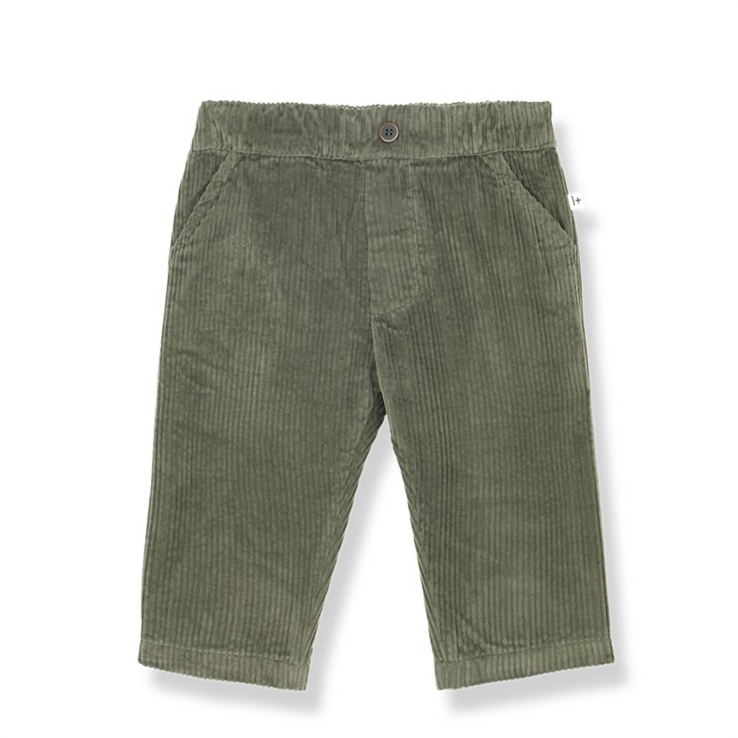 Introducing the Boy Ovidi Pant by One More In the Family, a stylish choice for your little one. These ochre corduroy pants feature an elastic waistband, side and back pockets, and a decorative horn button for added flair. Made entirely from 100% cotton, these pants are designed and crafted in Spain, ensuring quality and comfort. Perfect for babies and toddlers, this versatile piece embodies the brand's commitment to cozy, minimalist designs.