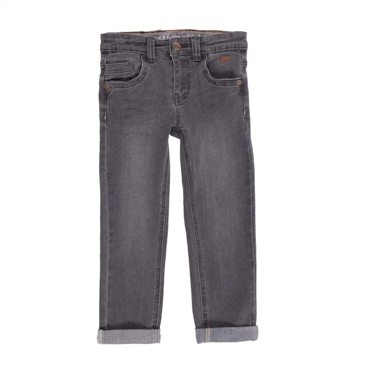 Introducing the Boy's Multi-pocket Stretch Denim Pants by Noruk Collection in a versatile Denim Grey. These pants feature a straight leg design with an adjustable waistband for a comfortable fit, complemented by a YKK® zipper and snap button closure. Crafted from a cotton blend, they comprise 73% cotton, 25% polyester, and 2% elastane for added stretch and durability. Perfect for everyday wear, these solid pattern pants offer functionality with multiple pockets.