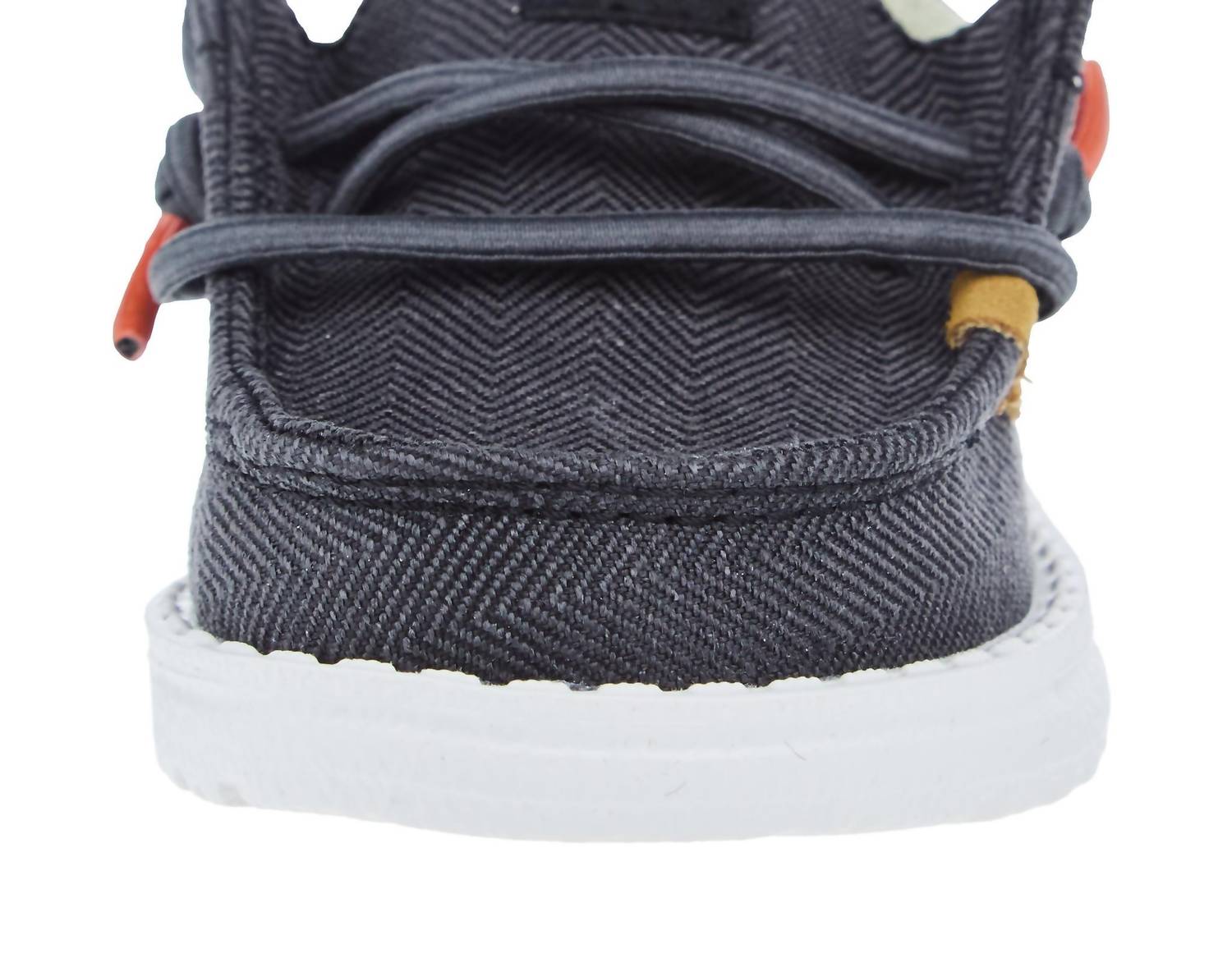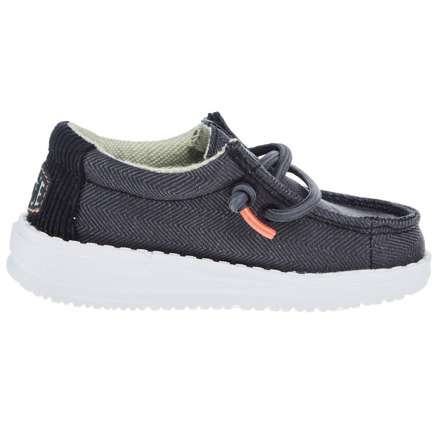 Introduce your little ones to the Hey Dude Kids Wally Toddler Shoes, perfect for those springtime adventures. Crafted from durable canvas in a stylish Herringbone Black, these sneakers embrace the streetwear trend. The design features a comfortable round toe, ideal for travel and everyday wear. Easy to match and built for play, these shoes are an essential addition to your toddler's wardrobe.