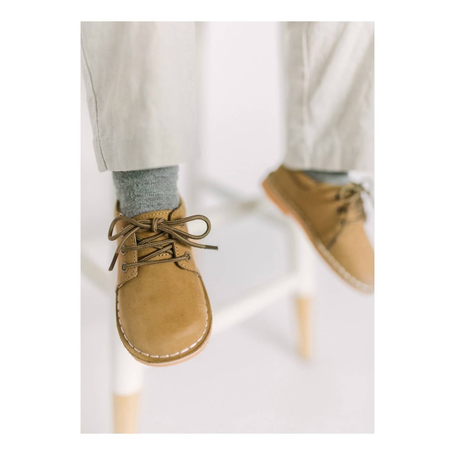 The L'Amour Boy's Tyler Leather Lace Up Shoes are crafted for both style and comfort, featuring a smooth leather upper in a sophisticated Nubuck Khaki hue. Designed with matching laces and a padded collar for added comfort, these shoes incorporate a traditional stitch down construction. With a synthetic lining and durable rubber sole, they ensure reliable wear for dressy occasions. Perfect for big kids, these shoes have a classic round toe shape that seamlessly blends fashion and functionality.