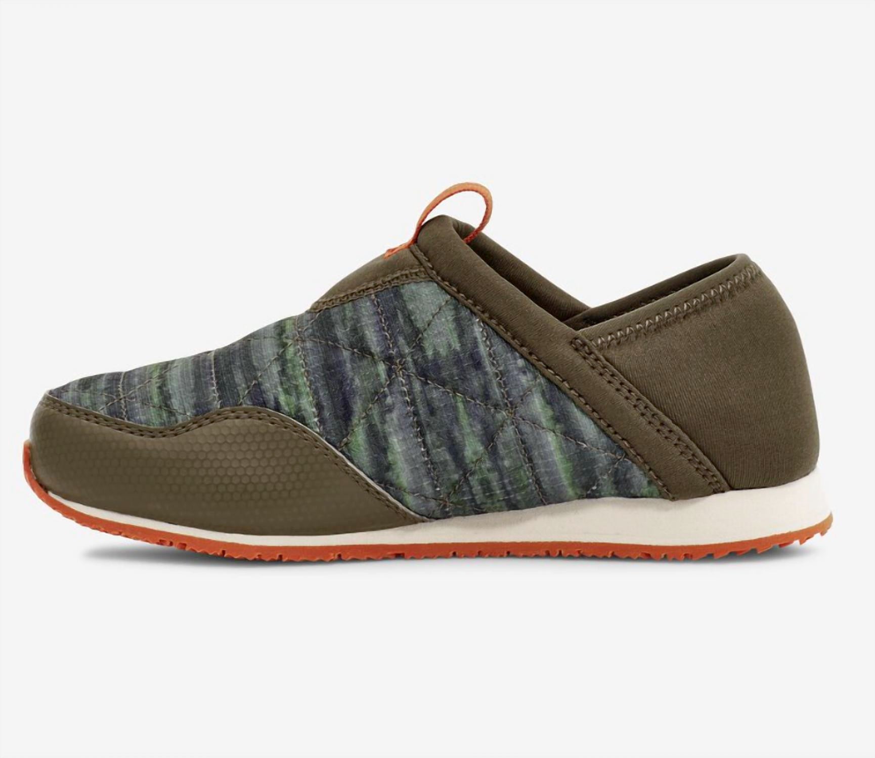 Delivering the same toasty warmth and earth-friendly materials as the original ReEmber, this cozy kids’ shoe has been updated with a seasonal tie-dye print. Employing a 100% recycled ripstop upper protected with TevaRAPID RESIST water-repellency treatment, this cozy camp companion includes the well-loved collapsible heel for easy on/off access.