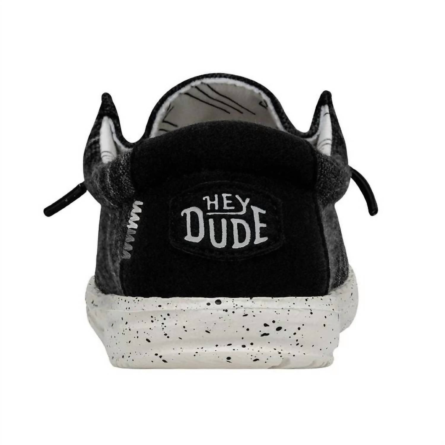 Elevate his casual looks with the Boy’s Wally Youth Stretch Shoes by HEY DUDE, perfect for streetwear enthusiasts. These sneakers in classic black combine a durable textile upper with a knit material that maintains shape and flexibility. Featuring elastic laces and a lightweight, flexible outsole, they offer comfort with extra-foam insoles and an easy-on system. Designed for travel and everyday adventures, these flat, round-toed shoes are ideal for summer concerts and beyond.