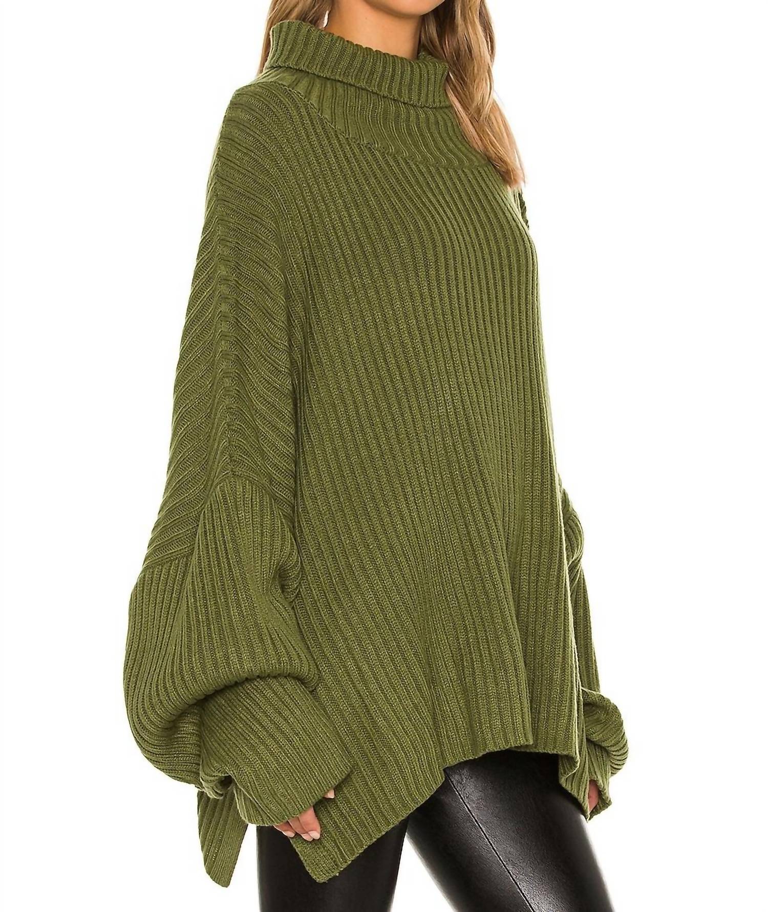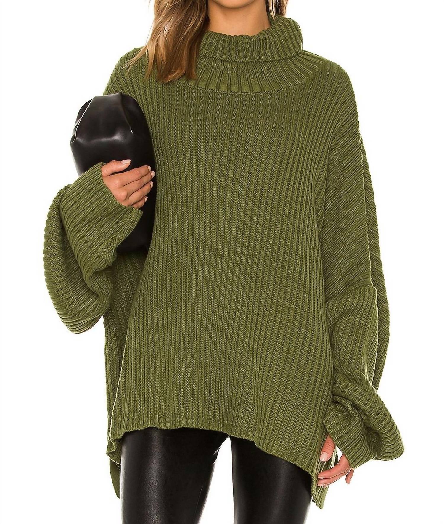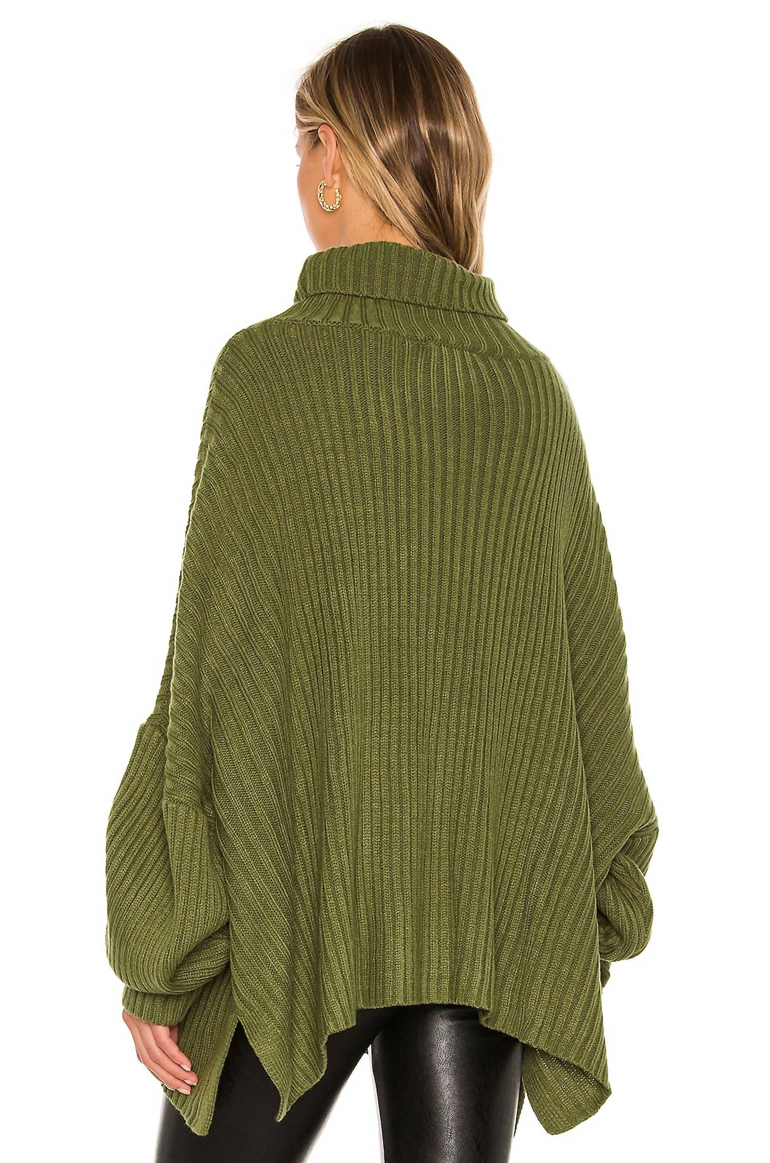 This cozy sweater features a foldover neckline, drop shoulder, and notched hem, creating a relaxed and stylish silhouette. The heavyweight ribbed knit fabric adds a touch of sophistication, while the 100% acrylic construction ensures a soft and warm wear. Hand wash to preserve its quality. The model, who is 5'10", is wearing a size S.