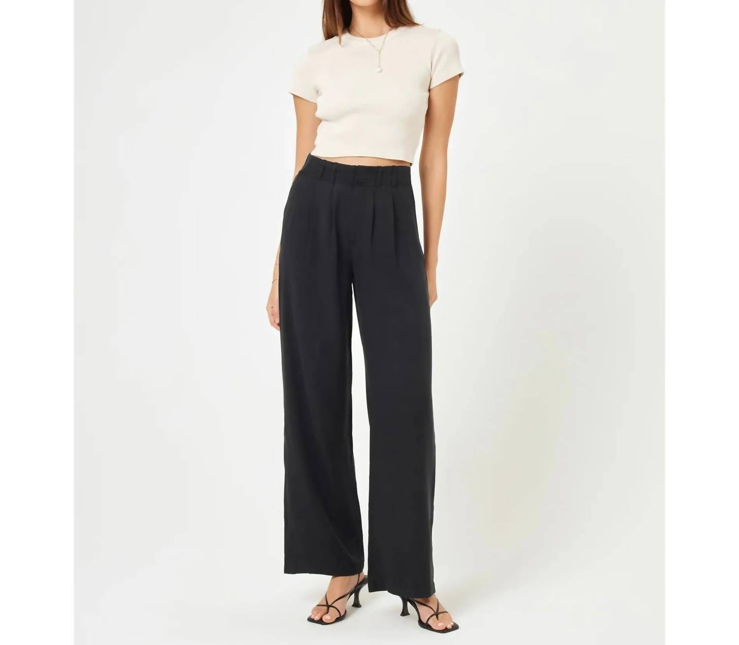 Leggings you can dress up or down for any occasion. Elevate your wardrobe with the Rhodes Straight Leg Pants by L*SPACE in a sleek black, perfect for any occasion. Made from 100% Rayon, these mid-rise pants offer a relaxed fit with a flattering straight leg and pleats at the front, combined with an elastic back waist for comfort. Designed with practicality in mind, they feature front pockets and a secure zip closure. Care for these delicate pants by hand washing them in cold water and laying them flat to dry. Model is 5'9" wearing a size S.