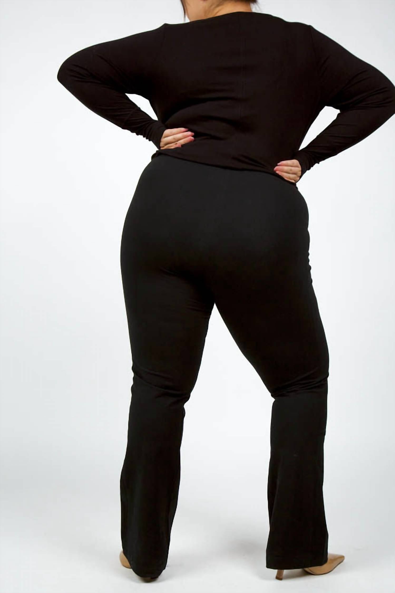 You'll be reaching for this best-selling legging all season long. Elevate your style with the Tara Bootcut Legging by Lysse, perfect for both work and leisure occasions. These black, relaxed-fit leggings boast a bootcut leg style, high-rise waist, and are crafted from a comfortable cotton blend with 86% cotton and 14% elastane for the perfect stretch. Enjoy the sleek, solid pattern design, enhanced by parallel tuxedo seams and lifting anatomical seaming, offering an ultra-slim look. Closure: Pull-on style. Care: Machine wash and tumble dry.