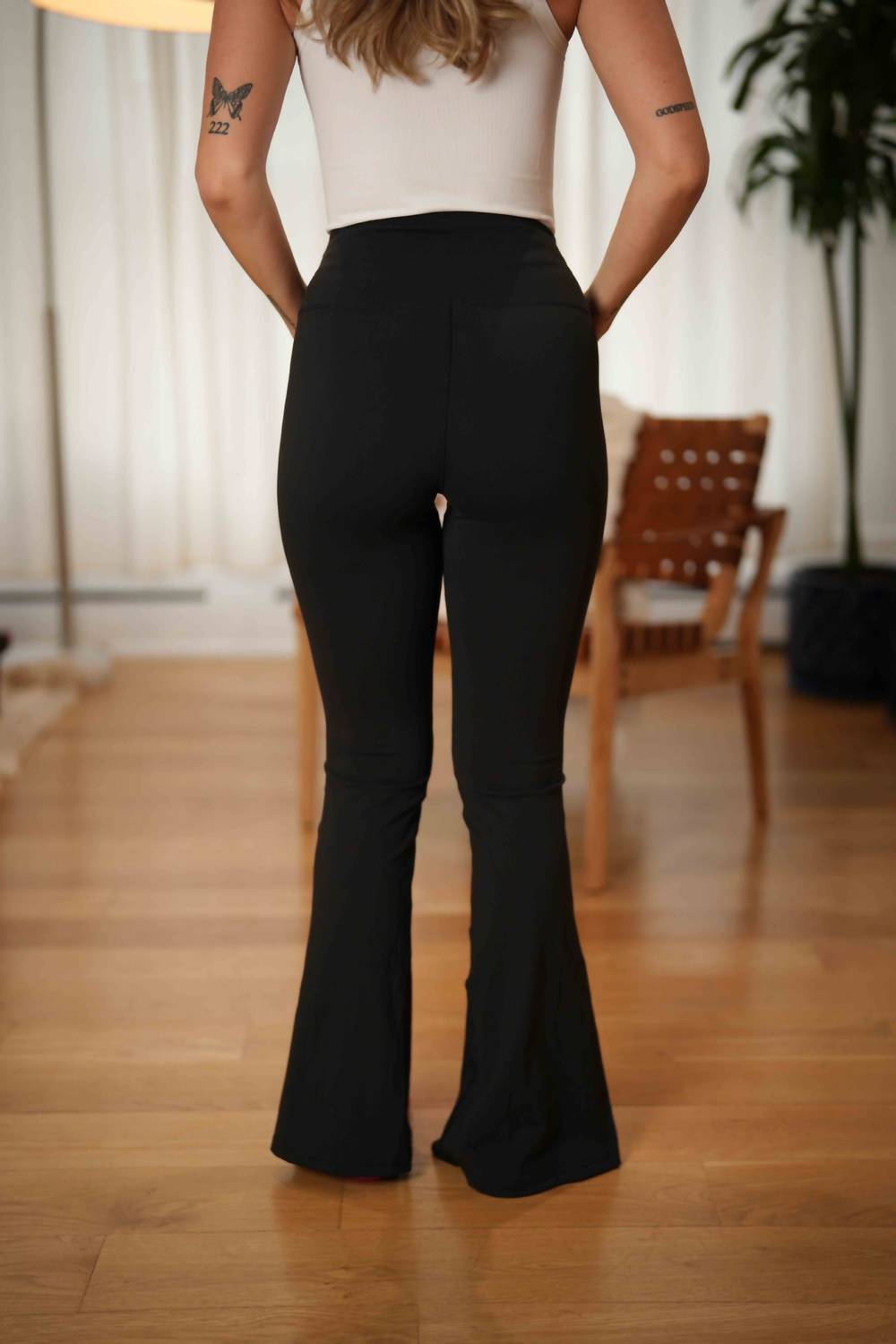 You'll be reaching for this best-selling legging all season long. Perfect blend of style and function. High-rise leggings feature a V waist design and flared legs to provide a flattering, comfortable fit, ideal for travel or casual outings. Crafted from 84% Poly Microfiber and 16% Spandex. Offer lots of stretch for ease of movement, following a solid pattern with a pull-on closure. Machine wash and tumble dry.
