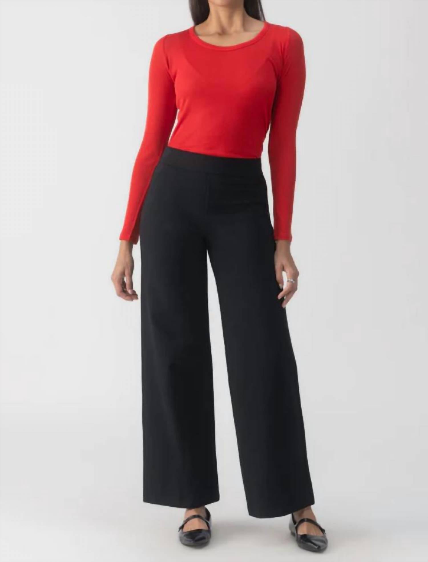 You'll be reaching for this best-selling legging all season long. Elevate your wardrobe with the Runway Wide Leg Leggings by Sanctuary, expertly crafted for a relaxed fit. These women's black leggings feature a semi-high rise and a wide-leg style with a convenient pull-on closure. Constructed from a blend of 68% Rayon, 27% Nylon, and 5% Spandex with a 100% Polyester contrast, they offer both style and comfort. Details include two front faux pockets and two functional back pockets, making them as practical as they are chic. Care: Machine wash cold, lay flat to dry.