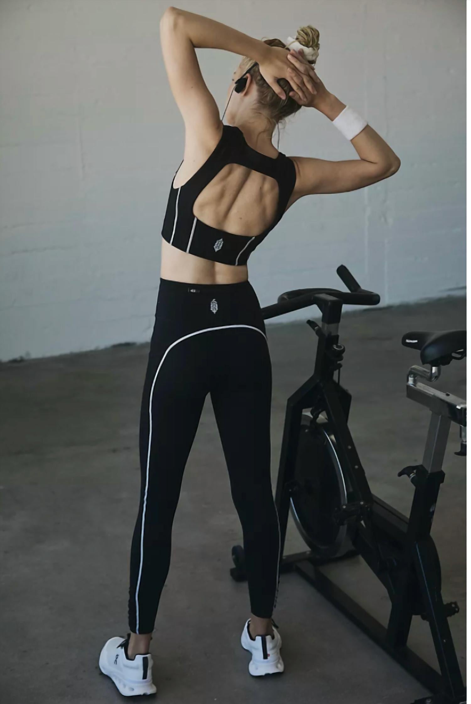 You'll be reaching for this best-selling legging all season long. The Free People You're A Peach Leggings are designed to support your most intense workouts, featuring a high-rise waist and full-length, slim-fit style. They are crafted from 80% Polyester and 20% Elastane, offering sweat-wicking, ultra-compressive fabric with a reinforced waistband for durability. These solid black leggings incorporate a pull-on closure and reflective trim for a figure-flattering, squat-proof experience. Care: Machine wash cold on a gentle cycle.