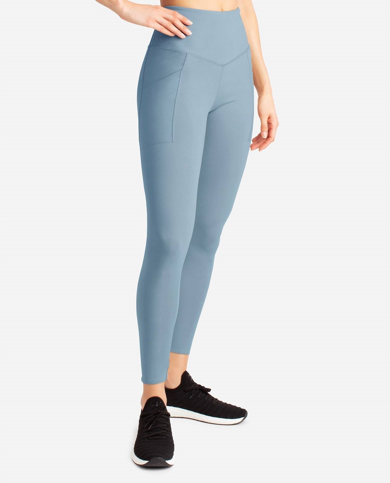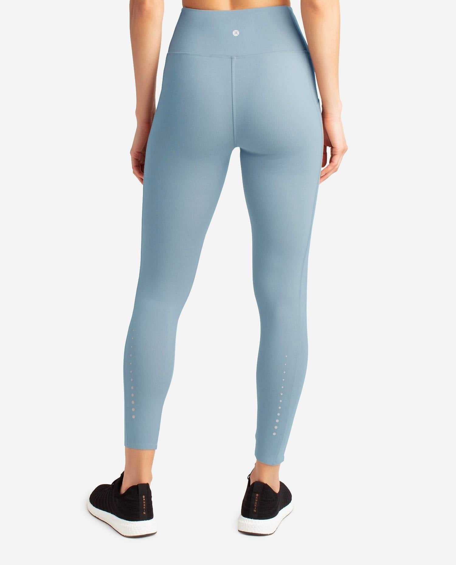 Elevate your workout wardrobe with Danskin's Pacesetter 7/8 Legging, crafted to combine function and style. Designed with a high-rise wide waistband and featuring side pockets and reflective details on the calves, these leggings offer both convenience and safety. Composition: 83% Polyester, 17% Spandex. Enjoy a perfect fit with a 25" inseam, all secured with a convenient pull-on closure. Color: Nebula. Ideal for activewear enthusiasts seeking both performance and comfort.