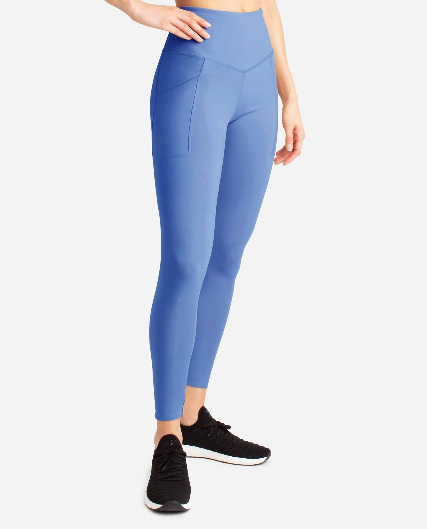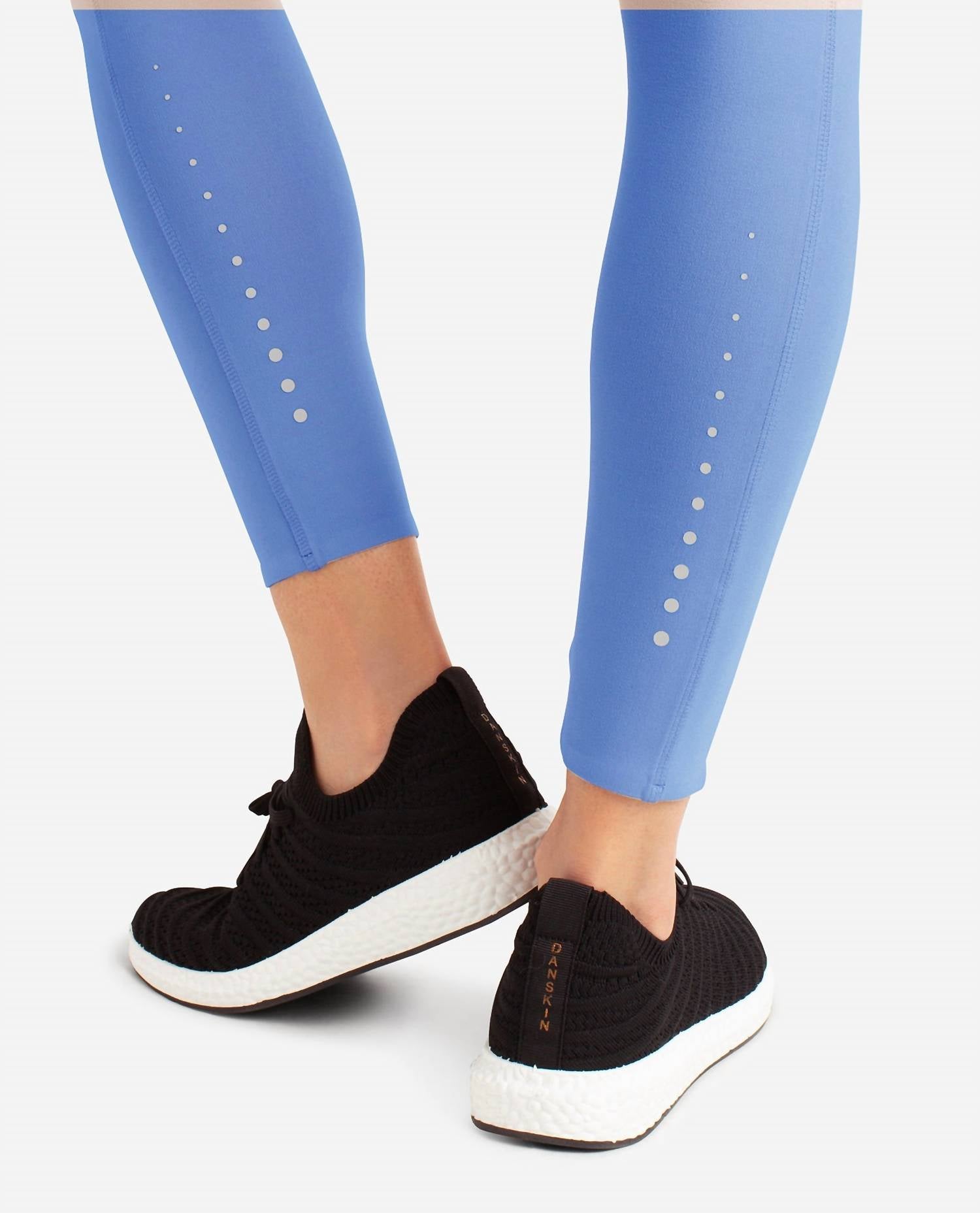 These leggings feature a high-rise wide waistband and a comfortable pull-on closure. Made with a composition of 83% Polyester and 17% Spandex, they boast a 25" inseam and practical side pockets. Reflective details on the calves make them perfect for evening workouts, offering both visibility and chic flair.