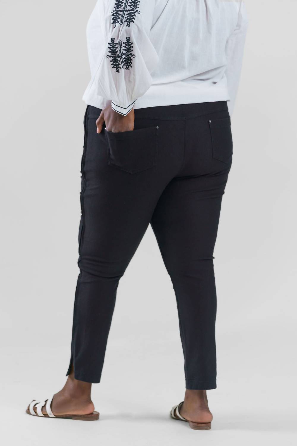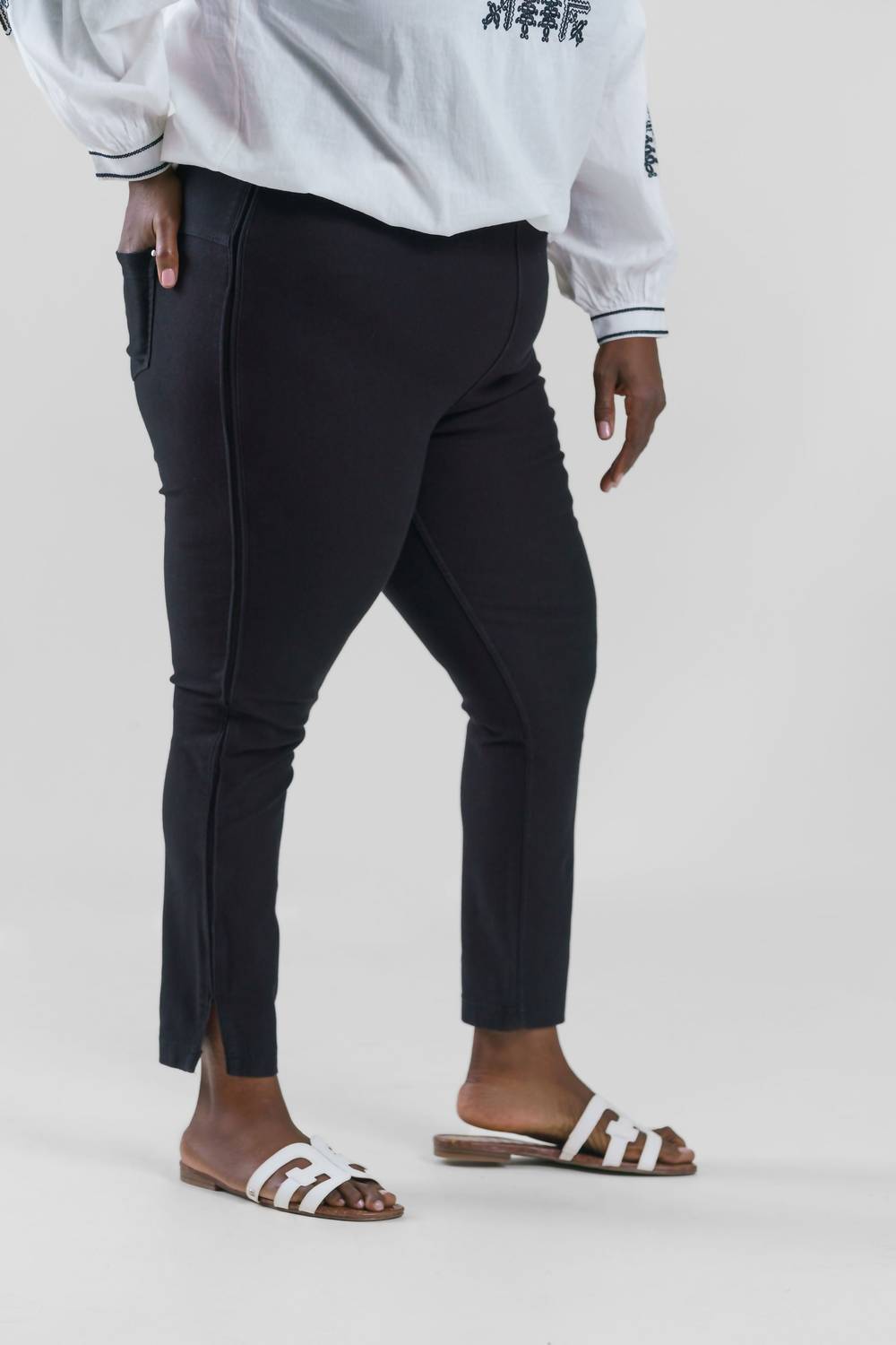 Leggings you can dress up or down for any occasion. Made from eco-friendly Repreve Knit Denim, the jean Park Legging showcases contrast-color topstitching, back pockets complete with metal grommets, side ankle slits, and side inserts with double piping. Long, lean and season-less, these 4-way stretch jean leggings deliver a body-hugging fit with a concealed patented waistband. They are also made by recycling eight to 10 large plastic bottles. 74% Cotton, 18% Repreve® Polyester made from recycled plastic bottles, 8% Spandex