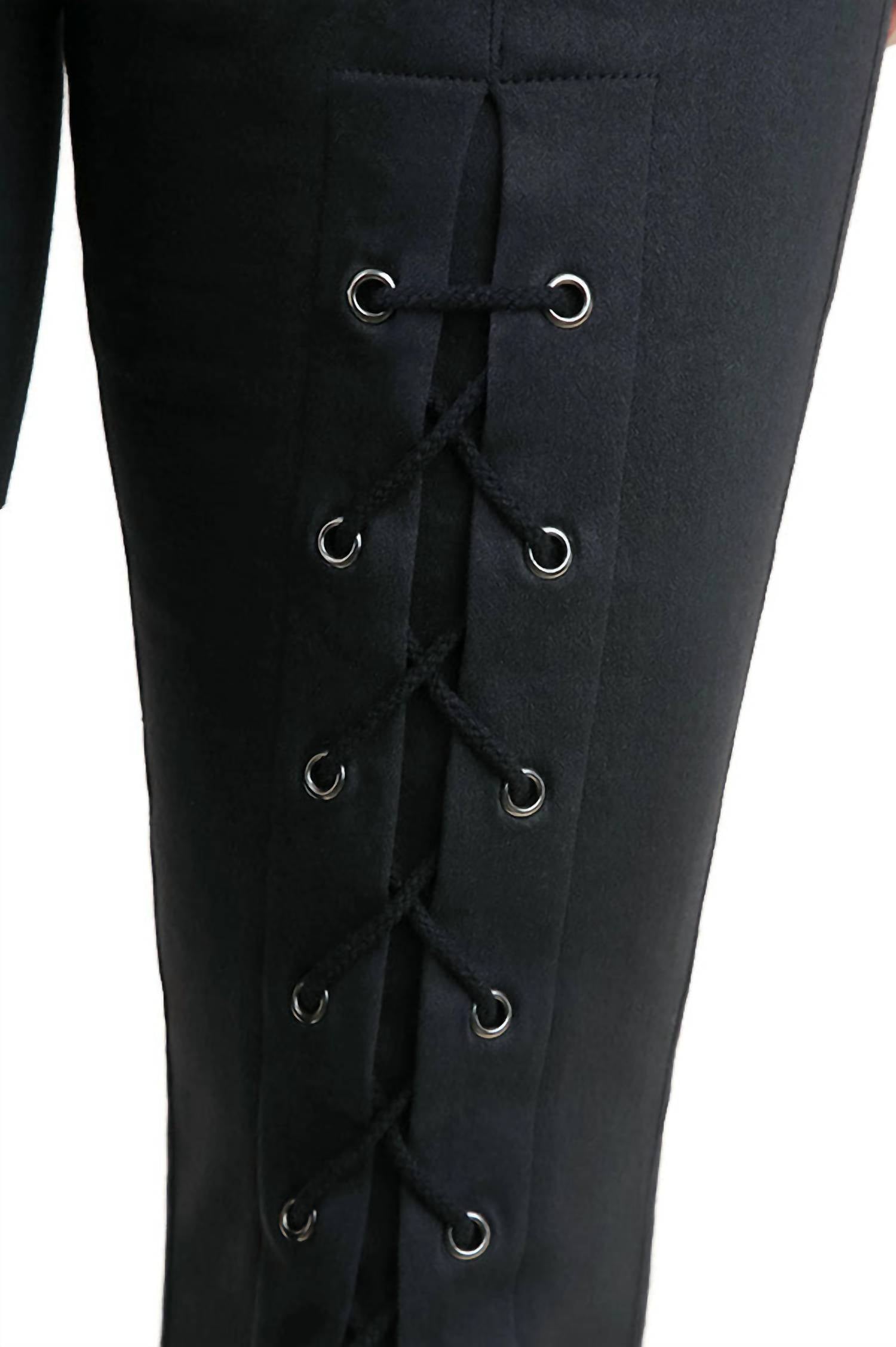 Leggings you can dress up or down for any occasion. Elevate your wardrobe with the High Waist Leggings with Lace Up Details by Umgee, designed to add a touch of grunge to any ensemble. These chic leggings feature a high-rise elastic waistband and a distinctive lace-up design for an edgy look. The slim fit and skinny leg style ensure a flattering silhouette, while the pull-on closure offers convenience. Perfect for pairing with any top, these solid black leggings fit seamlessly into your spring wardrobe, whether for a Thanksgiving gathering or a casual vacation outfit.