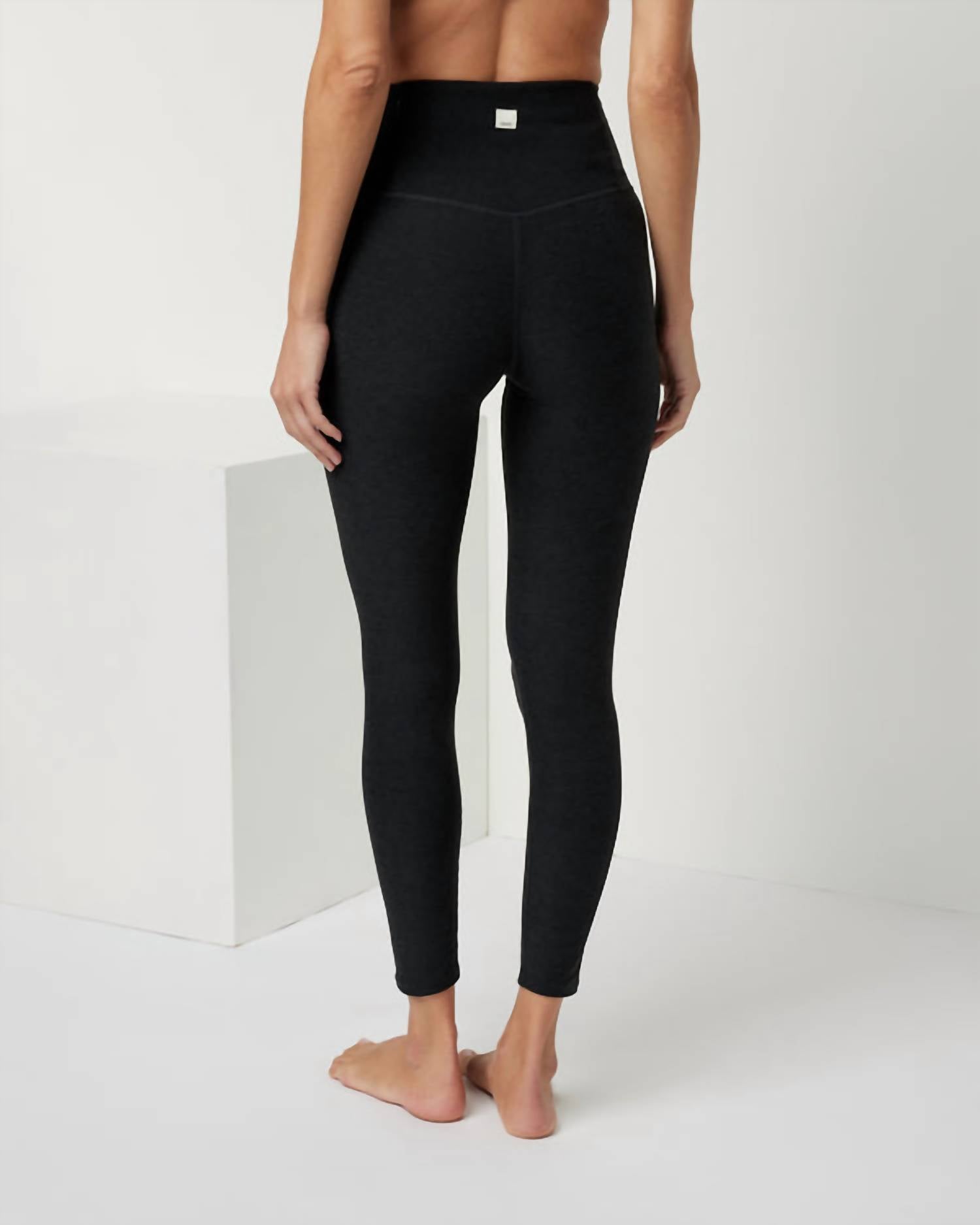 The legging you didn't know you needed and you won't want to take off. Elevate your workout wardrobe with the Daily Pocket Leggings by Vuori, designed for performance and style in elegant Black Heather. These solid, high-rise leggings feature a pull-on closure and a slim fit through the skinny leg, making them ideal for fitness enthusiasts. Crafted from 87% recycled polyester and 13% elastane, they offer both comfort and sustainability. Care is hassle-free with machine wash cold instructions, and easy tumble dry low without worrying about ironing.