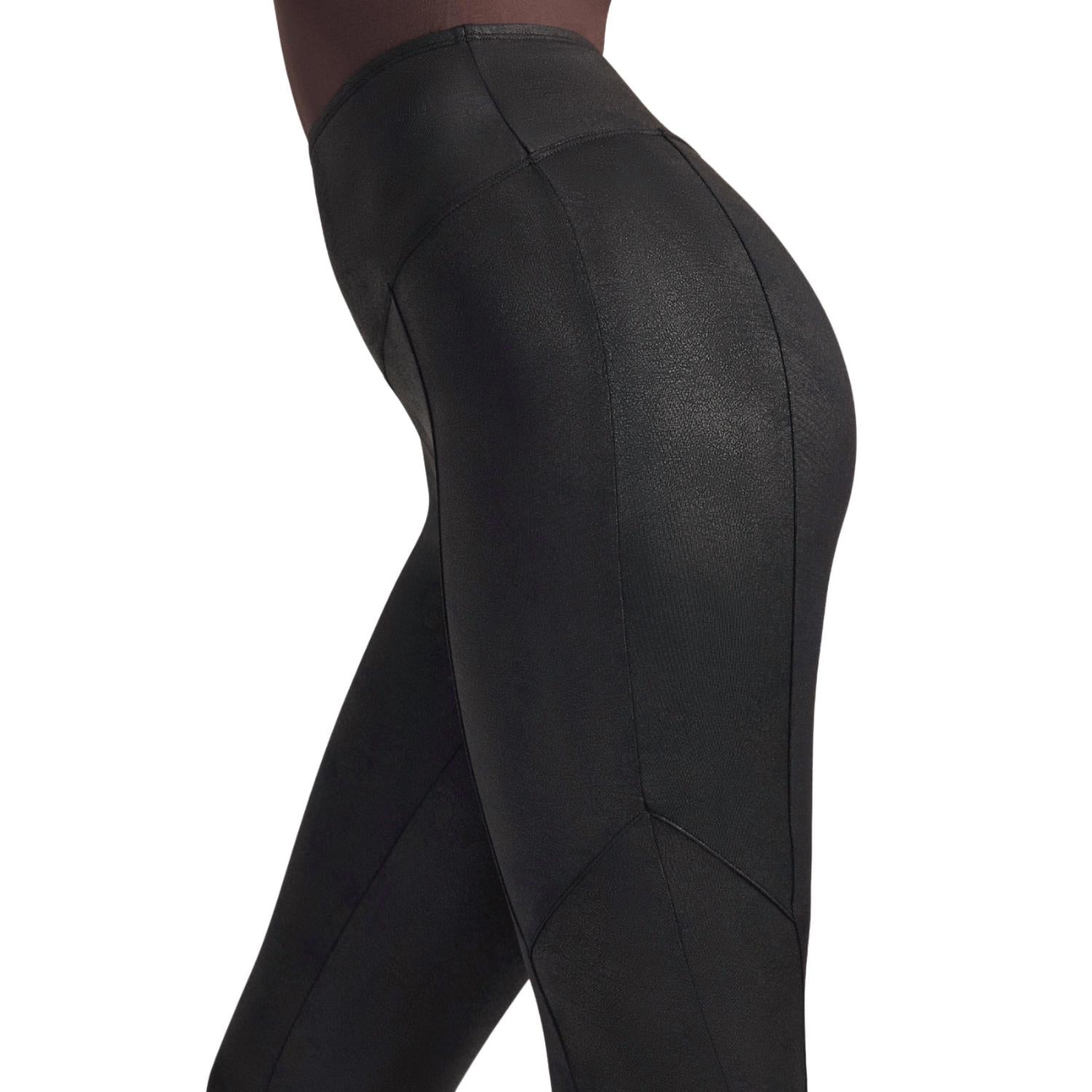 The legging you didn't know you needed and you won't want to take off. Introducing the Yummie Faux Leather Legging, crafted from a sleek nylon blend in classic black with a high-rise pull-on design. These leggings feature a skinny leg style and promise 360° shaping from waist to ankle, complete with a 27.5-inch inseam. The hourglass-shaped 2-ply signature waistband is designed to contour your figure, providing a tummy tuck and a rear lift with every wear. Made from 86% Nylon and 14% Spandex, these leggings should be hand washed cold inside out and lined dried for lasting durability. Perfect for a minimalist approach to spring fitness and workout attire.