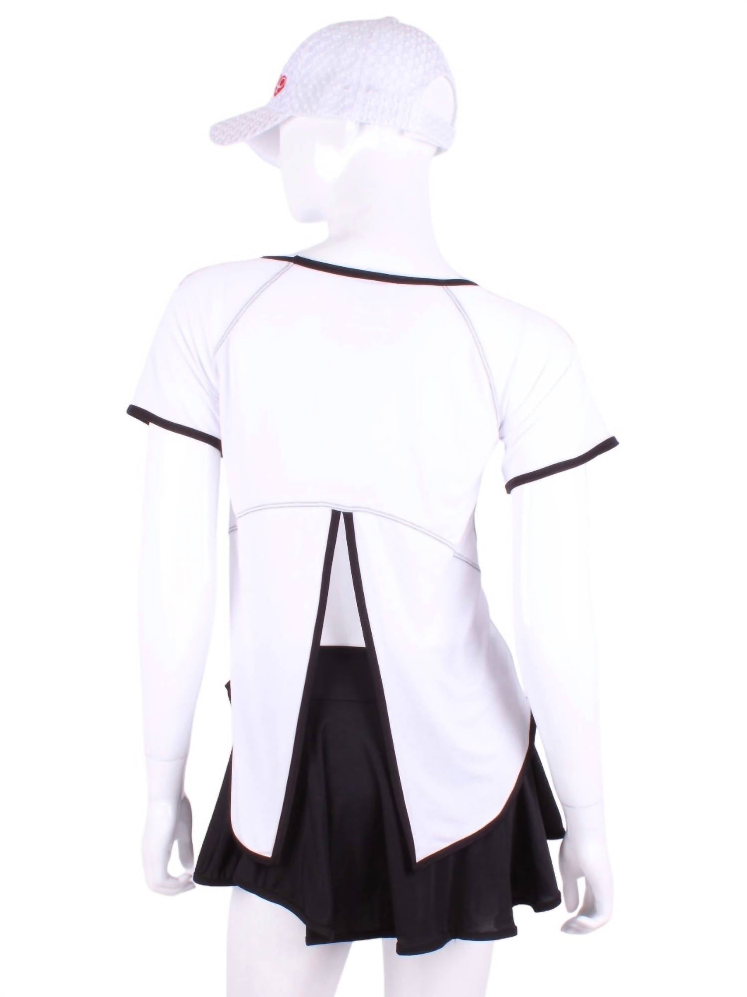 This classic, short sleeve tee will be your go-to staple this season and beyond. Experience the blend of comfort and elegance with the Women's Tie Back Short Sleeve Tennis Tee by Love Love Tennis. This solid white tee features short sleeves and a stylish crewneck, perfectly suited for fitness or workout occasions. Crafted for luxurious, soft wearability, the tee boasts a chic pull-on closure. Care for it with ease using hand wash and lay flat to dry methods, ensuring that its pristine condition is maintained.