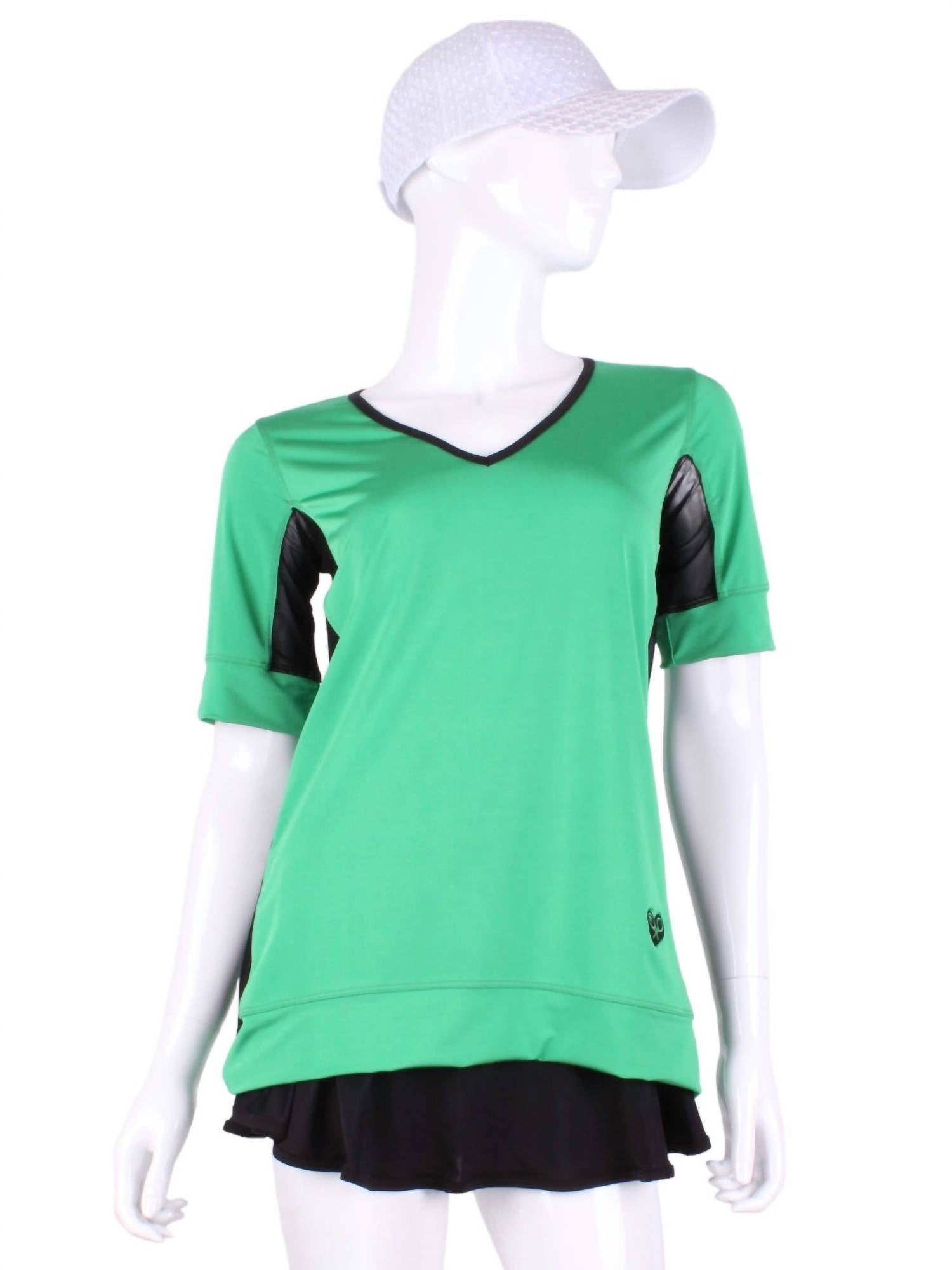 Look no further, you just found your perfect tee! Introducing the Women's Baggy Vee Tee by Love Love Tennis, a must-have for game day with its athleisure trend. Featuring short sleeves and a relaxed fit, this tee provides comfort and style with its cool green patterned design. The airy mesh sides offer breathability, while the pull-on closure ensures ease of wear. Perfect for summer, this V-neck tee is designed for active women who appreciate both functionality and fashion.