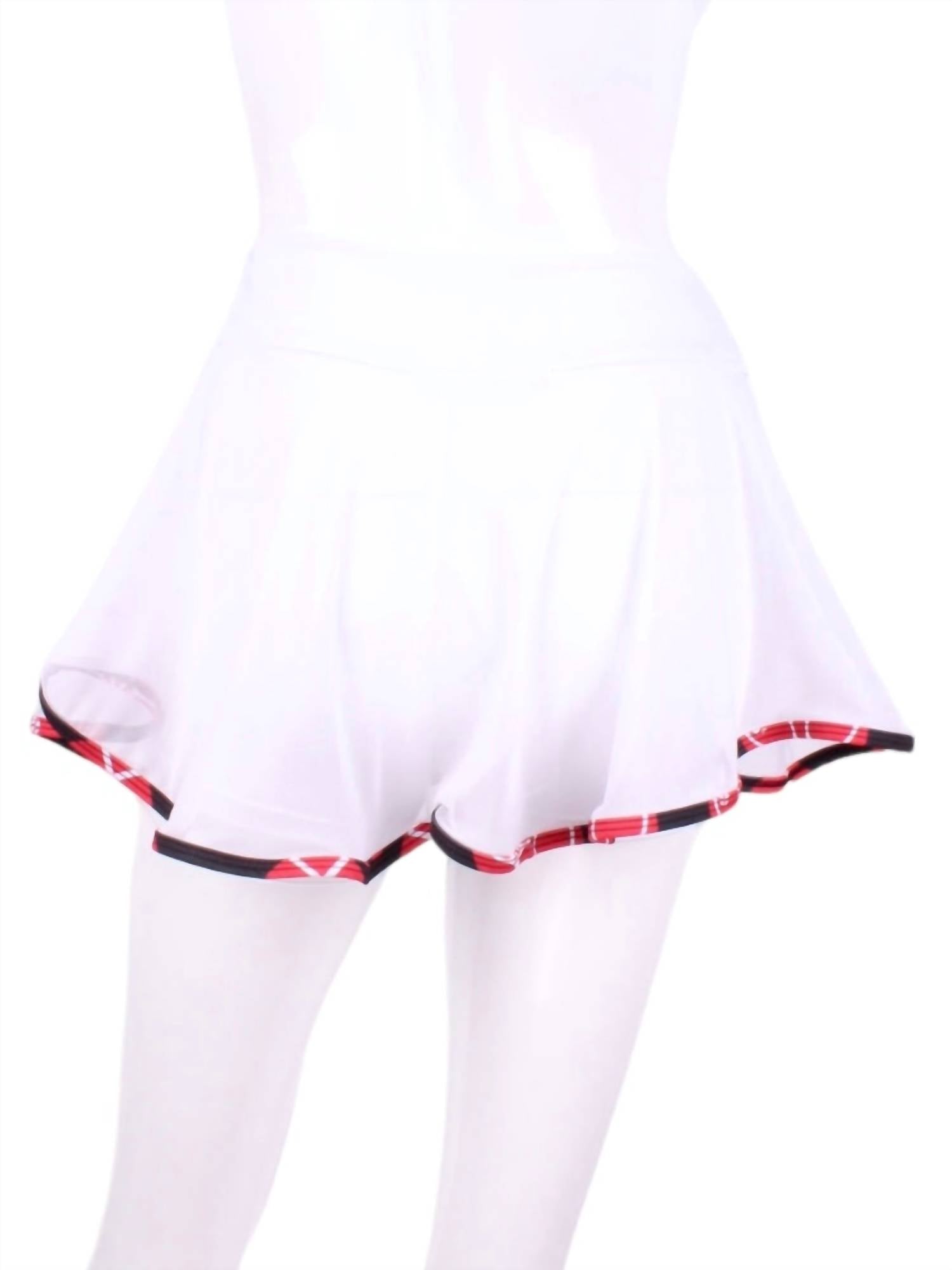 Show just the right amount of leg in this fit flattering mini. Discover the Women's Love "O" Skirt by Love Love Tennis, a fashionable athleisure piece in patterned white mesh perfect for game day. This mini skirt features an innovative design with shorties underneath, ensuring both style and comfort. Handmade in downtown Los Angeles, it offers a nearly naked feel with UV protection and quick-drying fabric for active summer wear. Enjoy the ease of a pull-on closure, though care instructions are not specified.